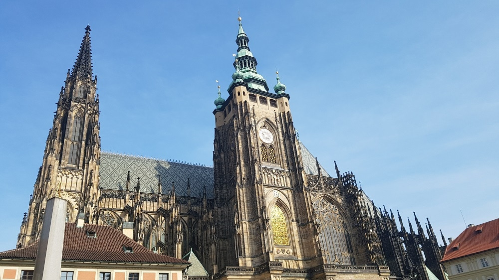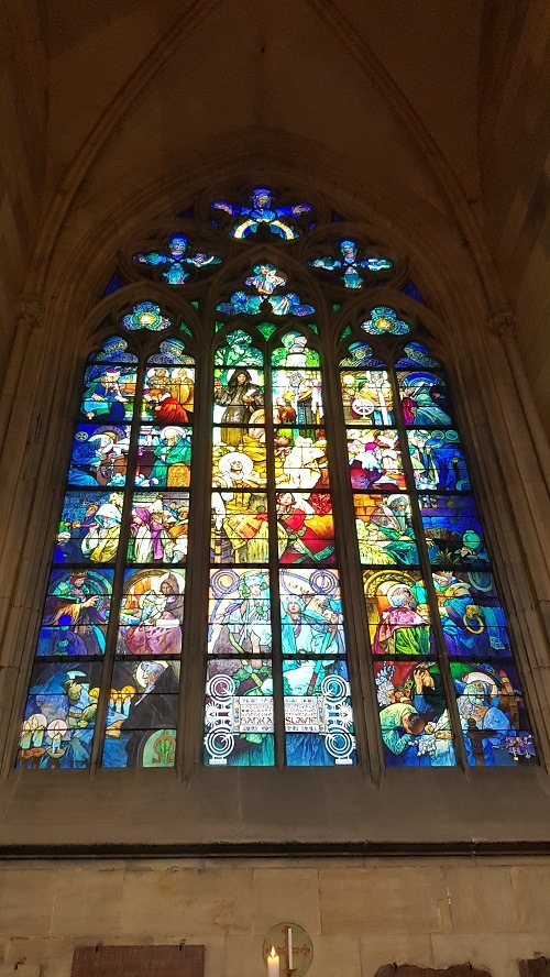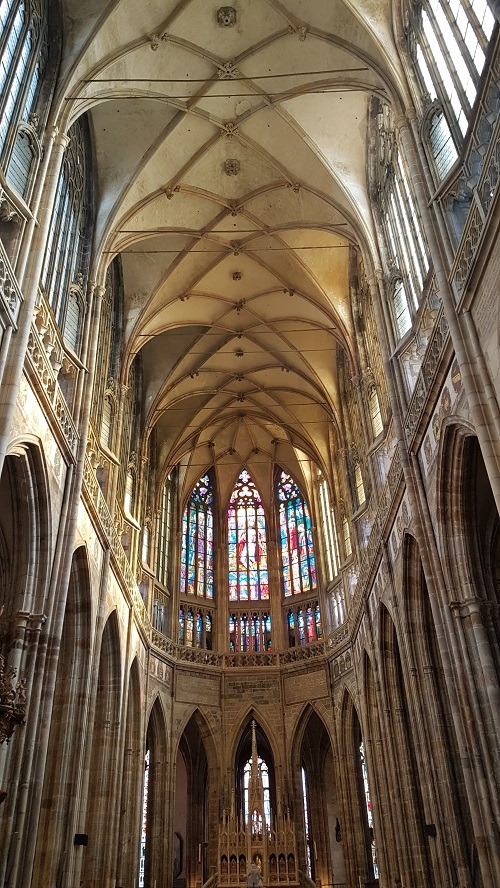 프라하 성의 상징인 성 비투스 대성당에 이르니 중후하면서도 정교한 모습에 입이 다물어지지 않는다. 600년에 걸쳐 완성되었다는 성당은 전체 길이가 124m, 첨탑의 높이는 100m에 이르고 내부의 천장 높이는 33m라고 하지만 실제 내부를 견학하니 훨씬 높게 느껴진다. 실내에 들어가니 높은 천장과 성당의 창을 장식한 전 세계에 가장 아름답다는 스테인드글라스(햇살의 각도에 따라 신비롭게 변하는 색상이 인상적이다), 2톤의 순은으로 제작되었다는 얀 네포무츠키의 묘와 역사를 그림이나 생동감 있는 조각으로 표현한 조형물들을 순서대로 견학한다.