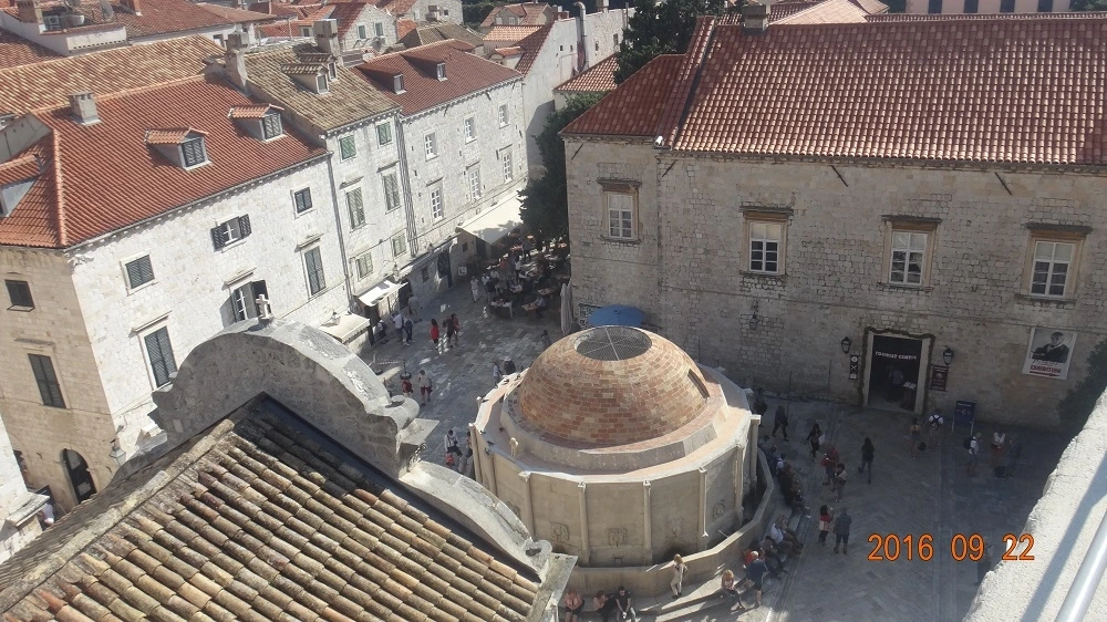 두브로브니크에 대한 전반적인 설명을 듣고, 본격적으로 성곽 도시에 대한 시찰이 시작된다. 구시가를 에워싸고 있는 거대 성벽의 총길이는 2km이며 최고 높이는 25m, 두께는 3m에 이른다고 하며 성벽 안에 6만 명을 수용할 수 있다고 한다. 2명 정도가 겨우 지나갈 만한 성벽 위에서 내려다보는 구시가와 아드리아 해의 풍경과 하늘을 이등분한 듯한 성벽길을 보니 유럽에서 가장 아름답고 인상적인 건축물이라는 말이 과연 실감이 난다. 바람을 막아주며 유사시에는 주요 인사의 피신처 및 보물 등의 보관장소였다는 높이 412m의 스르지산이 멀리 구시가 뒤로 아스라이 보인다.