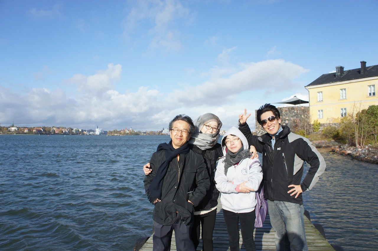 10:00 금일 일정이 본격적으로 시작되는데 거짓말처럼 하늘이 개인다. 그러고 보니 이번 기획연수 일정 중엔 독일도 그랬지만 이곳 핀란드에서도 날씨가 좋아 정말 다행이다. 트램으로 이동을 하는데 표지판에 핀란드어와 스웨덴어가 함께 표기가 되어 있는 등 스웨덴과의 인적 이동이 잦고, 스웨덴으로부터 많은 영향을 받은 부분이, 예전 650년간 스웨덴의 지배를 받은 역사적 사건과 무관하지 않은 듯하다. 마켓광장에 도착! 이곳은 또한 과일과 채소를 잔뜩 쌓아놓은 화려한 색채의 노점 천막들을 구경할 수 있으며 핀란드 민속공예품과 화려한 모직 스웨터, 머플러 등 기념품을 파는 곳이 눈에 들어온다. 수오멘린나 섬으로 가기 위해 배를 기다리는 동안 기념품을 구경하느라 시간 가는 줄 모른다. 10시 40분쯤 페리를 탑승하여 15분 정도 바다를 건너,