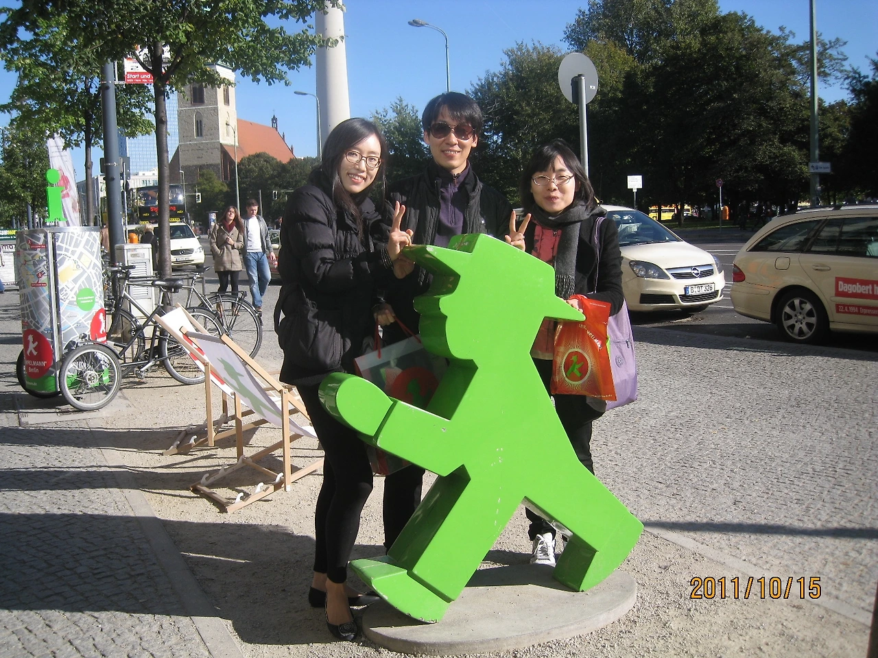 11:25 알렉산더 광장, 많은 상점들이 즐비하며 중앙에 트램이 다니는 이곳은 또한 맷데이먼 주연의 영화 촬영지로 유명한 곳이라고 한다. 알렉산더 광장 앞에 서 있는 텔레비전 TV 송신탑은 높이가 365m인 탑으로 베를린 최고, 유럽 굴지의 높이를 자랑하며, 지상 203m 지점에 전망대가 있고 엘리베이터로 올라갈 수 있다. 하늘을 찌를 듯 높이 솟아 오른 이곳에 꼭대기에서 베를린 시내를 내려다보면 전경이 한눈에 들어와 정말 멋질 것 같지만, 기다리는 줄이 장난이 아니다. 줄을 섰다가 너무 시간이 소요되어 다음 일정을 위해 전망대는 다음에 오르기로 한다.