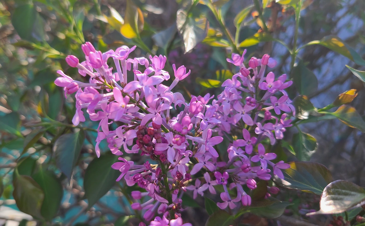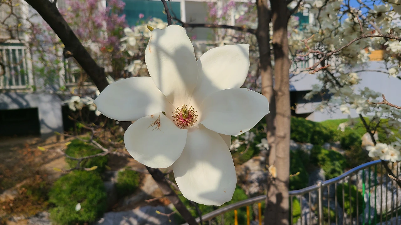 목련, 만첩 홍매화, 라일락, 미니 팬지...