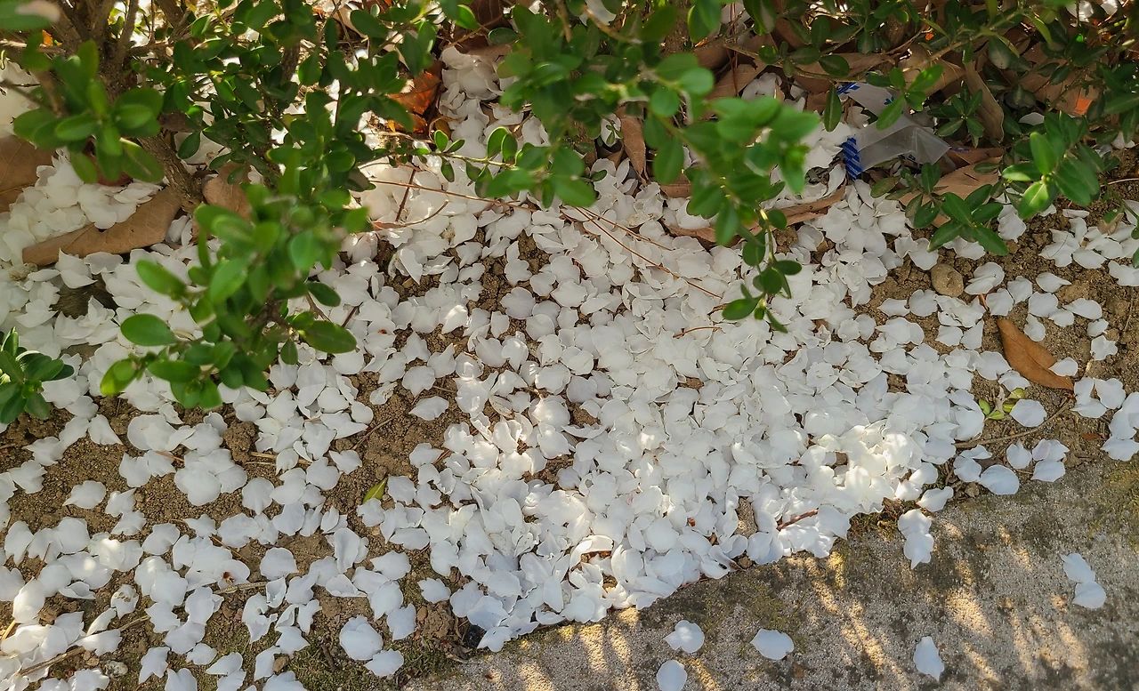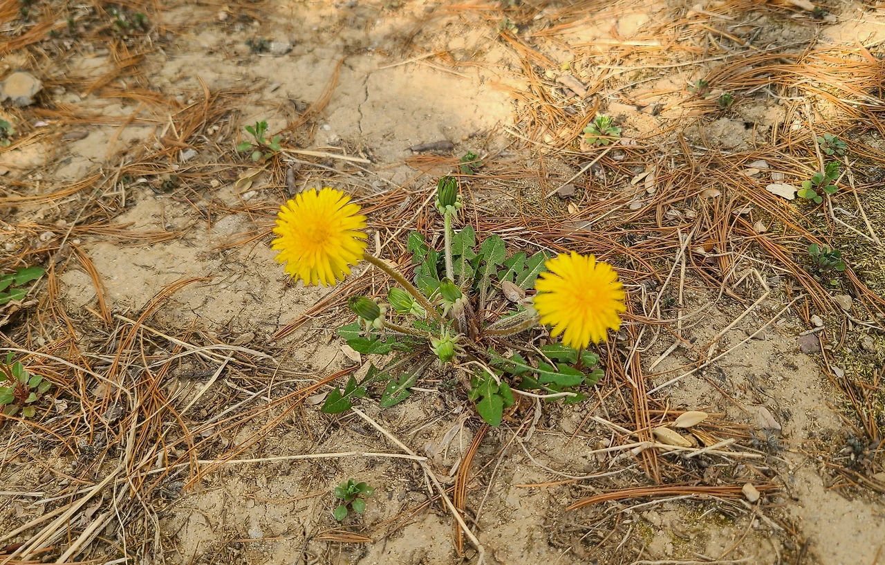 노란 민들레와 수북이 쌓인 하얀 꽃잎은,
