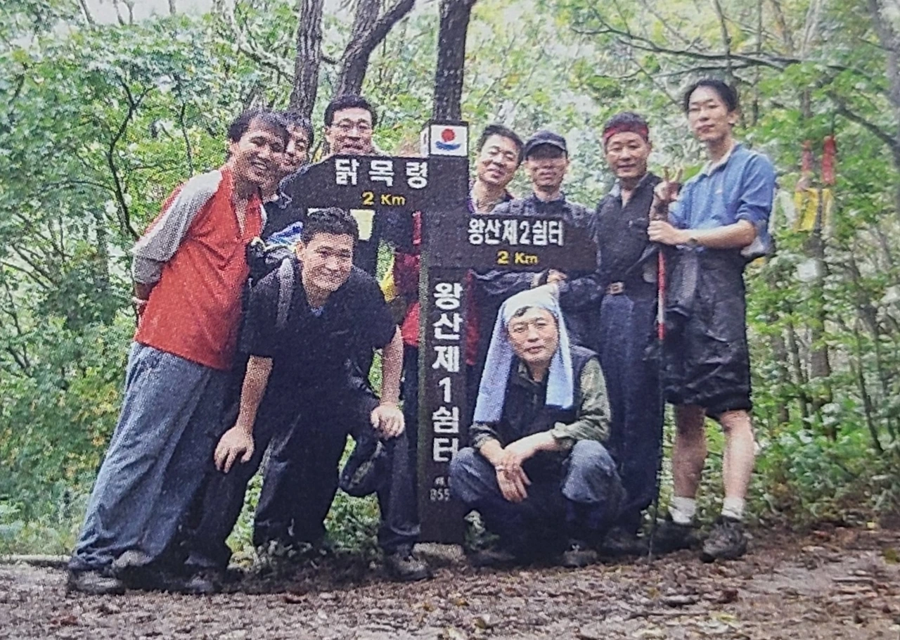 12시 20분. 왕산 제2쉼터(952m)에서 조금 휴식을 취하고 40여분쯤 더 가니 왕산 제1쉼터(855m)가 보인다. 너무나 포근한 산길과 한아름씩 떨어져 있는 도토리들, 곧게 뻗어 있는 적송과 비를 머금은 초목들이 한껏 뿜어내는 신선한 산내음이 유난히 푸르르다. 이런 경치에 빠져서일까? 목장길이 새로 생기면서 옛날 백두대간길과 새로운 대간길이 많이 헷갈린다. 군데군데 갈림길에 자칫 잘못하면 길을 잃기 십상이다. 길을 잘못 접어들어 back도 해보고, 대장님의 독도로 맞는 길을 찾아가니,