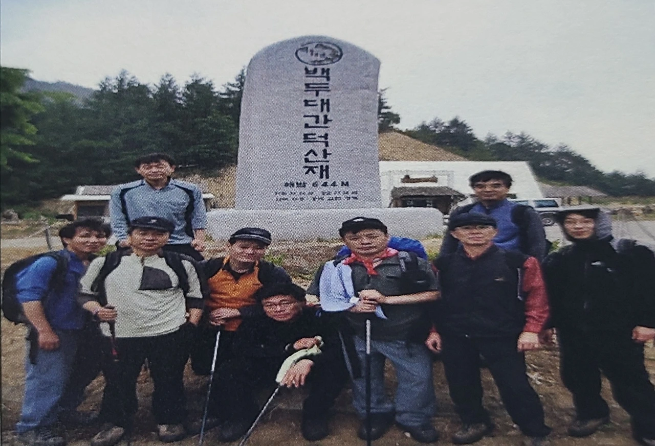 10시 30분. 대덕산(1,290m)에 오른다. 넓은 공터와 헬기장이 있는 이곳 대덕산은 전북, 경남, 경북에 걸쳐 있는 영산으로 예로부터 유명하다고 한다. 북쪽으로 삼도봉이, 동쪽으로는 수도산, 서쪽으로 덕유산, 남쪽으로 또 다른 삼도봉이 위치하며 주변의 산세가 심한 안개에 가려져 더 신비로워 보인다. 이렇듯 신비한 경치를 바라보니 어찌 술 한잔 생각이 나지 않으랴... 각자가 준비한 맛난 음식과 아름다운 경치를 안주삼아 한잔 마시는 소주맛이 유난히 달게 느껴진다.
