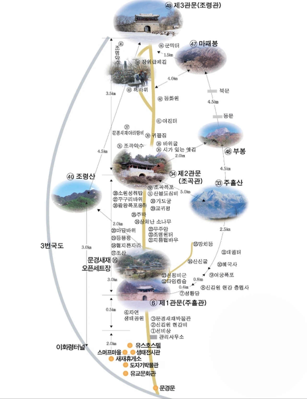 제3관문 조령관까지는 약 7km 정도이며,