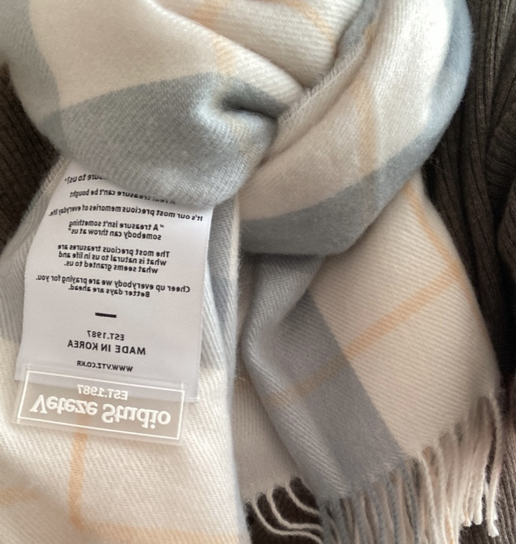 파인딩 체크 머플러는 크리스마스가 딱 10일 남았던 12월 15일에 도착했다. 사실 구매 전 거의 사흘을 고민한 문제가 있었다. 바로 색상이었다. 파인딩 체크 머플러는 총 10가지 색상이 있는데 모든 색이 다 깔끔하고 화사해서 눈길이 갔지만, 그중에서 나의 사흘을 앗아간 건 아이보리, 그레이 블루였다. 고민 끝에 구매한 컬러는 아이보리다.