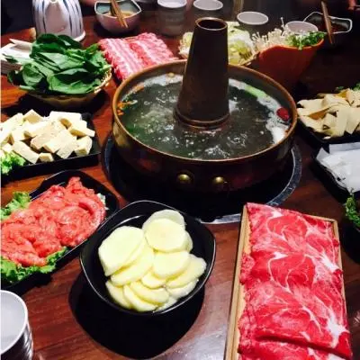 그렇다면 베이징 전통 훠궈는 무엇일까요. 사실, 베이징 관광청의 소개에 따르면 '커다란 냄비에 나오는 요즘 훠궈' 와 베이징 전통 방식은 다르다고 합니다. 사실 베이징의 전통 방식은 훠궈가 아니라 '솬양러우' 라고 부르는데, 마치 신선로와 같이 생긴 동으로 만든 냄비를 사용하는 방식입니다. 가운데 굴뚝과 같은 부분에 숯을 넣어 오늘날의 가스나 인덕션처럼 열을 내고, 그 열로 주변에 있는 국물을 데워 그 국물에 고기를 익혀 먹는 방식입니다. 고기는 양고기를 사용합니다. 원나라 때부터 전해졌다고 하며, 강희제와 건륭제의 천수연 잔치에도 이 양고기 요리가 빠지지 않았다고 합니다. 이 훠궈는 우리가 흔히 생각하는 빨간 국물의 맵고 얼얼한 훠궈가 아니라, 상대적으로 맑은, 거의 맹물 수준의 국물을 사용한다고 합니다. 사실 베이징에서의 첫 식사를 동래순만큼 유명하다는 '남문솬양러우' 에서 하고 싶었는데, 세 시간 대기하라고 하여 포기하고 말았습니다.