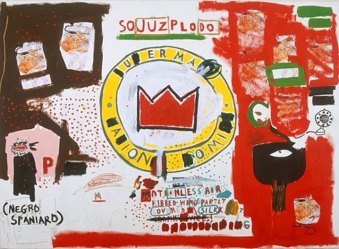바스키아의 작품에서 카피라이터 "ⓒ" 표시와 왕관을 쉽게 찾아볼 수 있는데요. 그의 왕관은 존경하는 인물에 대한 찬사임과 동시에 작품에 대한 그의 자부심이었습니다. 그가 존경을 표하는 인물들은 모두 흑인이었습니다. 바스키아는 그 당시 주류 예술계에 처음 등장한 흑인이었습니다. 유색인종에 대한 차별, 불평등한 사회분적 위기 속에서도 자신만의 길을 개척한 흑인 영웅들과 함께 바스키아 자신에게 표하는 존경이었고 권위였습니다.