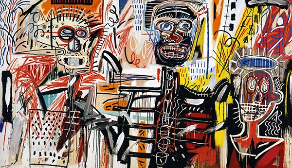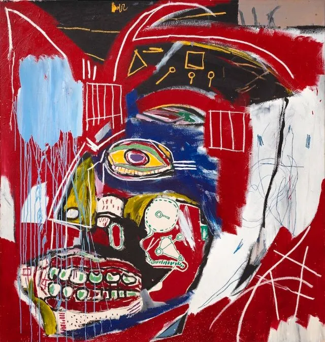 마음이 정말 괴롭거나 답답하면 가슴을 갈라서 다 보여주고 싶을 때가 있죠. 뼈들에 휘감겨 있는 형형색색의 혈관들과 형체들을 보면 보이지 않았던 바스키아의 내면 속 형용할 수 없는 답답함과 갈등, 사색들을 보는 것 같습니다. 그저, "예술가를 꿈꿨고, 어렸을 때 해부학 책을 보게 됐고, 그래서 해골을 많이 그리게 되었다. " 그게 아니라, 바스키아는 남들은 볼 수 없는 자신을 그린 겁니다. 자신의 골육을 타고 휘몰아치는 온갖 감정들을요.