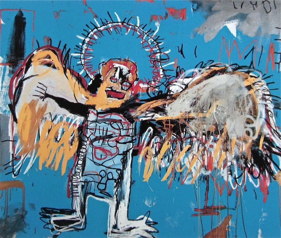 그의 그림은 묘합니다. 죽음을 말하면서도 발랄한 색감에, 어린아이 같으면서도 표정은 난폭합니다. 천사 같으면서도 악마 같고 악마 같으면서도 무언가를 수호하고 있는 미신 같은 모양. 모든 것이 뒤섞여 있습니다. 바스키아의 인생처럼요.