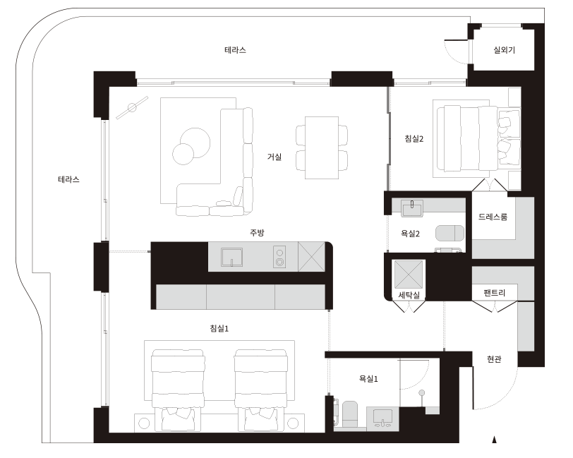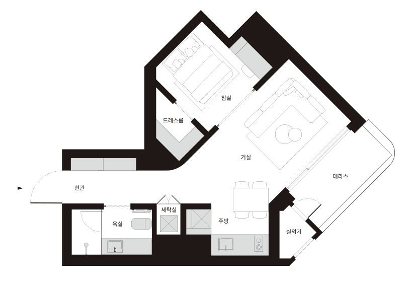 위의 사례들처럼 시니어하우징 안에서 세탁실, 주방 등의 가사 공간은 기존의 아파트의 공간 배치에서 벗어나, 현관 근처에 배치됩니다. 이는 시니어하우징이 갖고 있는 공동주택과의 차이점 중 하나이며, 서비스 측면에서는 오히려 호텔과 좀 더 유사해 보이기도 합니다. 각 시설별로 어떤 서비스를 제공하는지는 평면 구성에도 영향을 줍니다. 현재 공급되고 있는 노인복지주택 역시 건축 계획 단계부터 어떤 서비스를 제공할지에 대해 고민하고 서비스에 특성에 맞는 설계를 해야 할 것입니다.