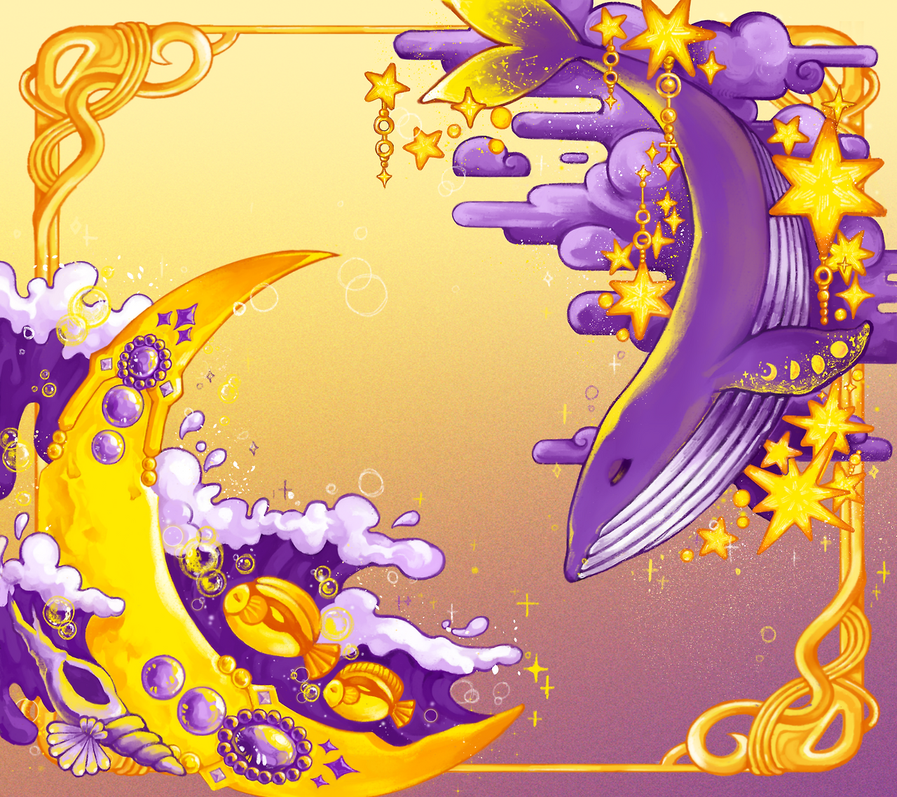 그렇게 오늘도 달님과 고래는 꿈속에서 다른 세상들의 풍경을 좀 더 생생하게, 진짜같이 느낄 수 있게 되었습니다. 직접 가보지 않아도 눈을 감으면 펼쳐지는 미지의 세계에 한 걸음씩 가까워진 기분을 느끼는 것은 충분히 그들을 행복하게 했답니다.