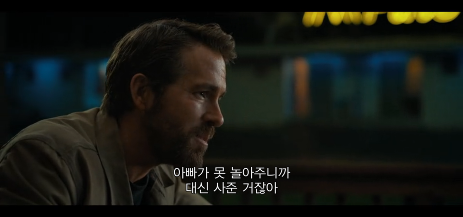 라이언 레이놀즈가 나오는 영화들은 대표작이었던 <데드풀>을 시작으로 <프리가이>, <킬러의 보디가드> 심지어 애니메이션과 피카츄 탐정 영화까지 비슷한 연기를 보여준다. 뭔가 라이언 레이놀즈가 묻는다..?는 느낌. 모든 영화를 라이언 레이놀즈화한다고 볼 수도 있으니 꼭 나쁜 의미만은 아니다(이걸 볼 팬분들께..). 개인적으로 데드풀에서는 좋았지만 너무 능글맞는 연기는 영화의 수준을 조금 B급화 시킨다고 생각한다. 이건 나쁜 말 맞네...
