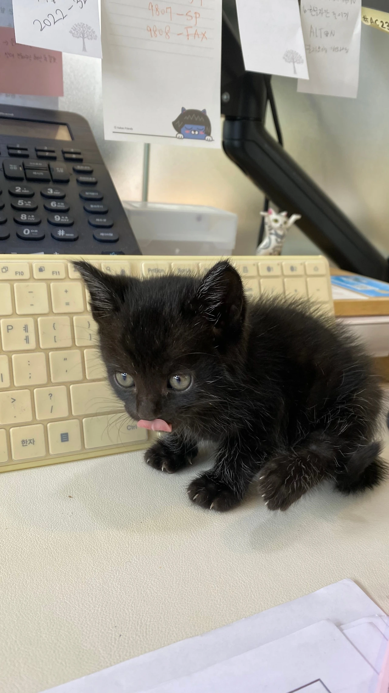 대표님에게 사정하여 2달 정도는 콜라와 함께 출근했다. 아기고양이는 하루에 17시간 이상을 잠만 자기도 하고, 내 자리가 끝 쪽이라 아래에 두고 밥이랑 화장실만 2~3번 정도 챙기면 되었기에 큰 지장은 없었다. 호기심이 많은 고양이었던 콜라는 그래도 가끔 사무실 여기저기를 헤집고 다니며 관심을 끌어 방해 아닌 방해를 하고는 했다. 지금 생각하면 대표님에게 참 미안하다...