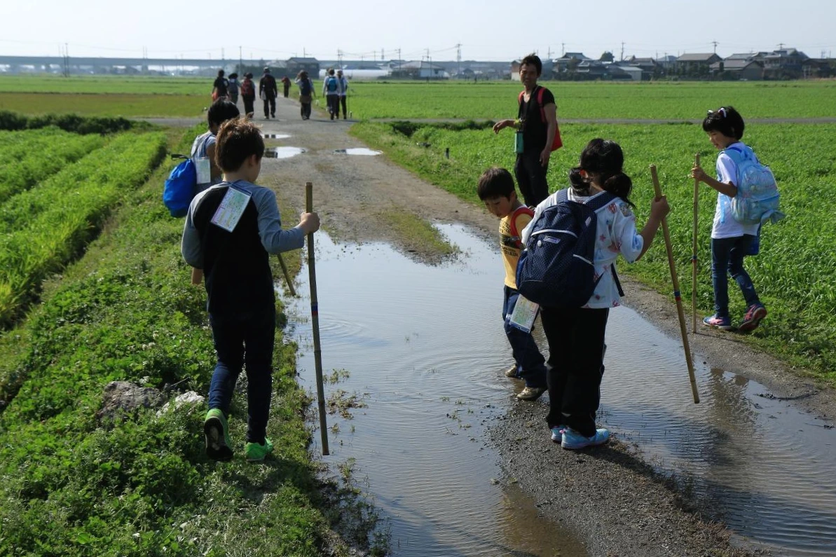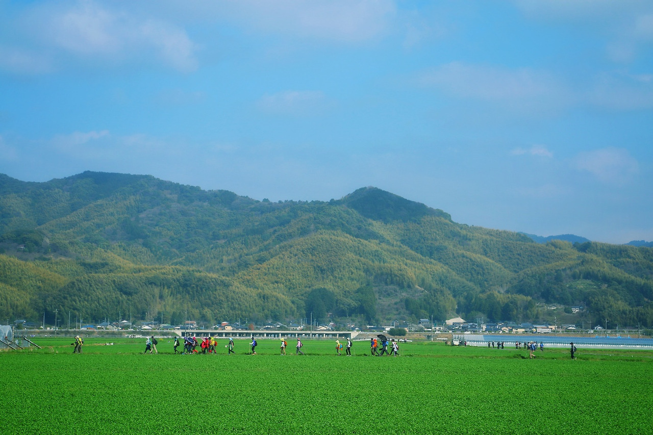 경쾌한 대나무들의 댄스 공연이 끝나자 코스의 클라이맥스인 지쿠고 평야가 펼쳐지기 시작했다. 멀리 기요미즈산과 오마키산을 배경으로 펼쳐진 연두색 보리밭을 걷고 있으니 시골마을에서 뛰어놀던 어린 시절이 생각나더라. 한국과 일본의 시골 풍경이 크게 다르지 않아 더욱 친근하게 느껴졌다. 마침 옆을 지나가던 초등학생 아이들이 우리를 신기한 듯 쳐다본다. 멋쩍은 듯 씨-익 웃었는데, 웬 꼬마 녀석 한 명이 웅덩이를 발견하고 규슈올레 완주 선물(?)을 선사했다. 서프라이즈 선물을 뒤로하고, 도착 지점인 미치노에키 휴게소 마트에서 현지 특산품, 농산물 구경도 하고 일행들과 서로의 완주를 축하하는 것으로 행사는 끝이 났다.