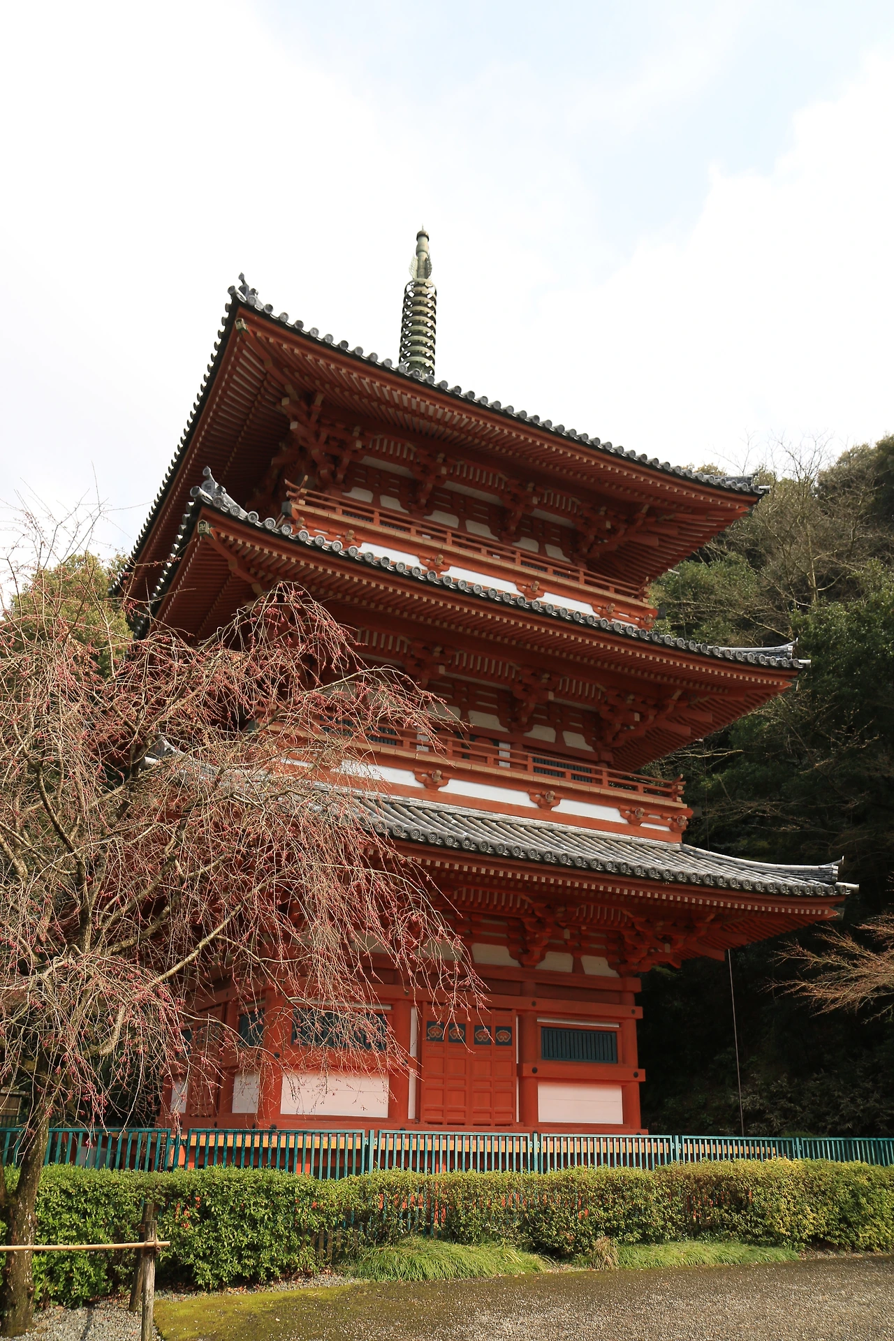 그렇게 한 번 더 가파른 계단을 오르게 되면 기요미즈데라 절을 마주하게 된다. 교토의 유명한 기요미즈데라와 이름이 같은 이 곳은 크지는 않지만 산으로 둘러싸인 곳에 위치해 아늑한 분위기를 풍기고 있었다. 그래서일까. 이 곳에는 결혼, 임신, 순산의 신이 모셔져 있어 신혼부부를 비롯 저마다의 안녕을 기원하는 현지인들이 찾는다고 전해진다. 절 옆에는 1836년에 지어진 높이만 무려 26.5m에 달하는 기요미즈데라 절 삼중탑이 자리하고 있었다. 웅장함과 우아함을 동시에 풍기면서 기요미즈산과 조화를 이루어 또 다른 장관을 뽐내고 있었다. (가장 기대했던 삼중탑 앞의 커다란 벚꽃나무가 만개한 모습은 아쉽게도 볼 수 없었다.)