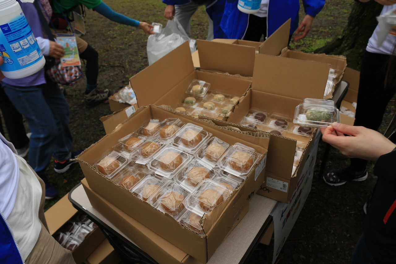숲속의 길을 따라 걷기를 40여 분. 안개 속에 숨어있던 조야마 사적 삼림공원 전망대에 도착했다. 아쉽게도 출발하기 전 기대했던 지쿠고 평야의 모습은 짙은 안개로 인해 볼 수 없었다. 하지만 풍경보다 더 달콤한 것이 나를 기다리고 있었다. 참가자들을 위해 준비한 팬케이크, 양갱, 푸딩 등 다양한 현지 간식이 그 주인공. 찰나의 달콤함을 맛보려면 부지런히 걷는 수밖에 없었다. 게임 속 퀘스트를 깨는 플레이어가 이런 느낌일까 재미난 상상을 하면서.