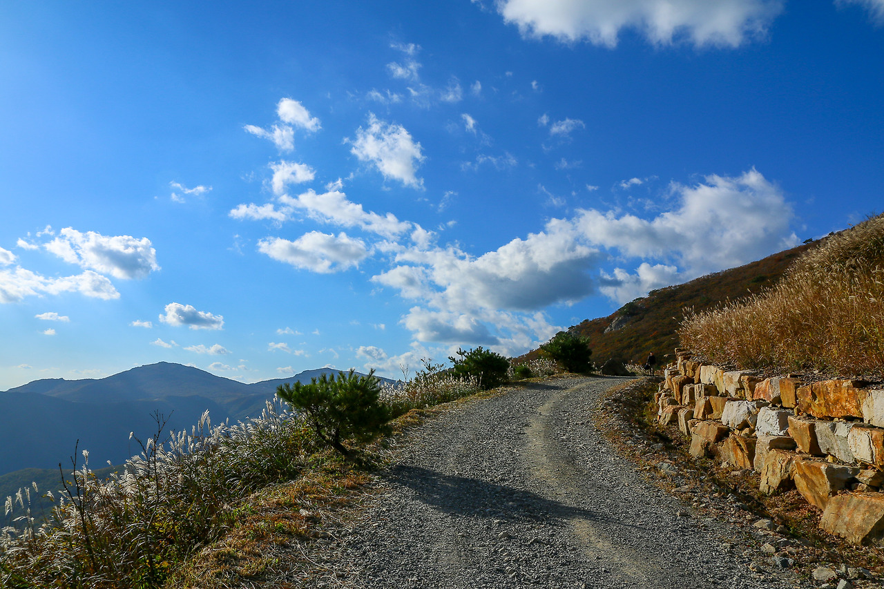우리의 목적지는 해발 900m에 위치한 간월재 억새평원! 배내골의 사슴농장 앞 주차장에 차를 대고 6km의 여정을 시작했다. 과거 차가 다니던 임도였기 때문에 트레킹화 없이도 별 무리 없이 걸을 수 있었다. 올라가는 길조차 예사롭지 않은 간월산의 풍경은 말해 뭐해~ 그날따라 하늘은 어찌나 파랗고, 기온마저 적절해 땀이 날만하면 바람에 씻겨 내려가는 순간으로 기억된다. 물론 금요일 연차 쓰고 떠난 여행이라 더욱 완벽했다. 백문이 불여일견. 그날의 사진을 보며 에피소드를 끄적 해보려 한다. (마스크 없이 깨끗한 공기 마구마구 마시던 2년 전의 여행이 너무나 그립다ㅠㅠ)
