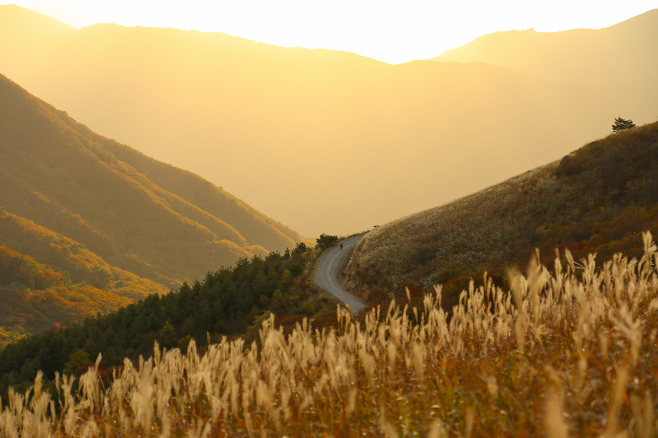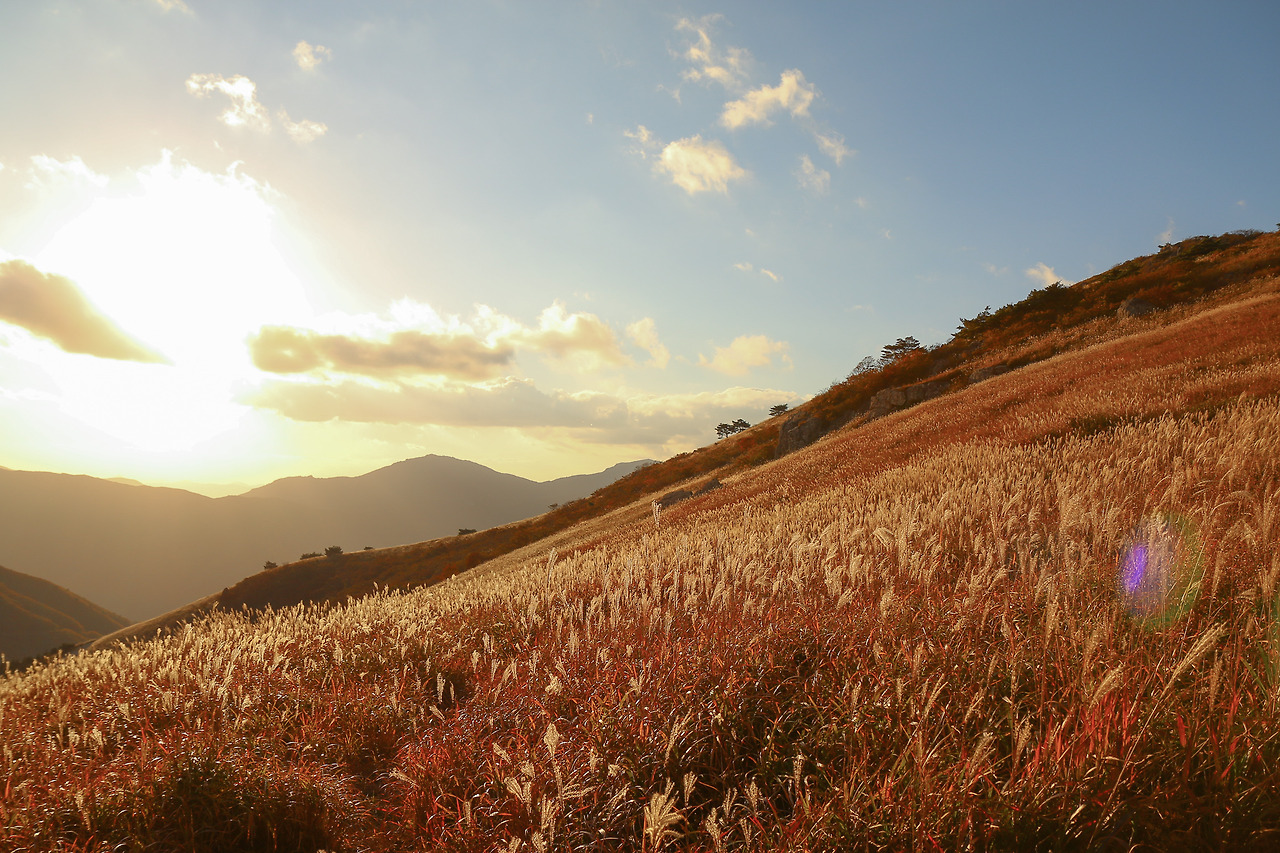 억새평원을 물들인 10월의 노을은 평생 잊지 못할 것이다.