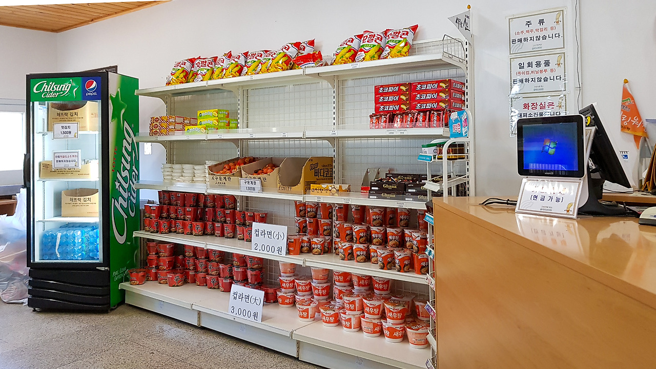 여행을 떠나기 전, 간월재에 올라가면 컵라면을 꼭 먹어야 한다는 꿀팁(!)을 실천하기 위해 부지런히 걸었다. 다행히 신라면을 비롯한 몇몇 컵라면이 남아 있어서 우리는 신라면, 새우탕, 햇반 그리고 삶은 달걀을 구입하고 먹기 위한 세팅을 끝냈다. 이것이 인스타그램의 폐해일지도 모르지만, 인증샷을 뛰어넘는 그 아찔한 맛에 얼마나 감탄했는지 모른다. 해발 900미터의 산에서 맛보는 컵라면 치고 가격이 착해서(큰 컵 3천 원, 작은 컵 2천 원) 아주 만족스럽게 클리어했다. 단, 휴게소 영업시간이 4시 반까지이니 참고해서 올라갈 것.