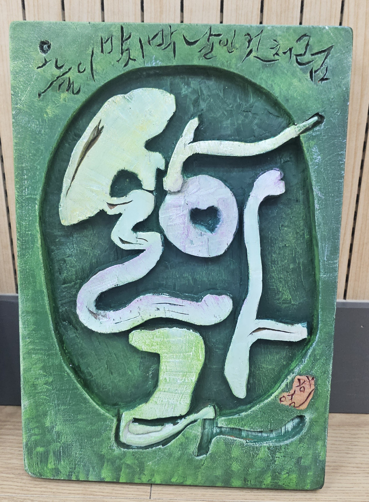 작가: 이열하 / 서각작품명: 살아라! / 작품설명: 굴곡 있는 삶을 둥글게 사랑하며 살아라!