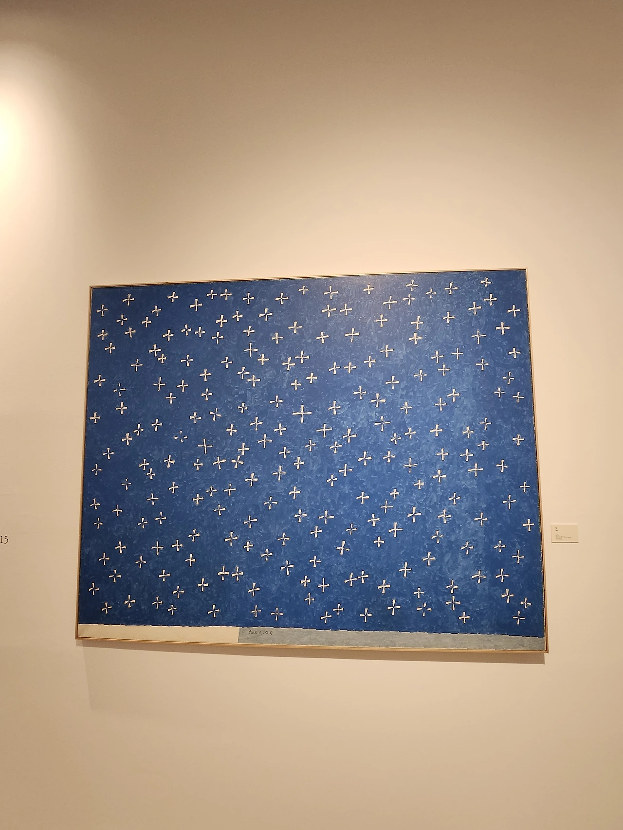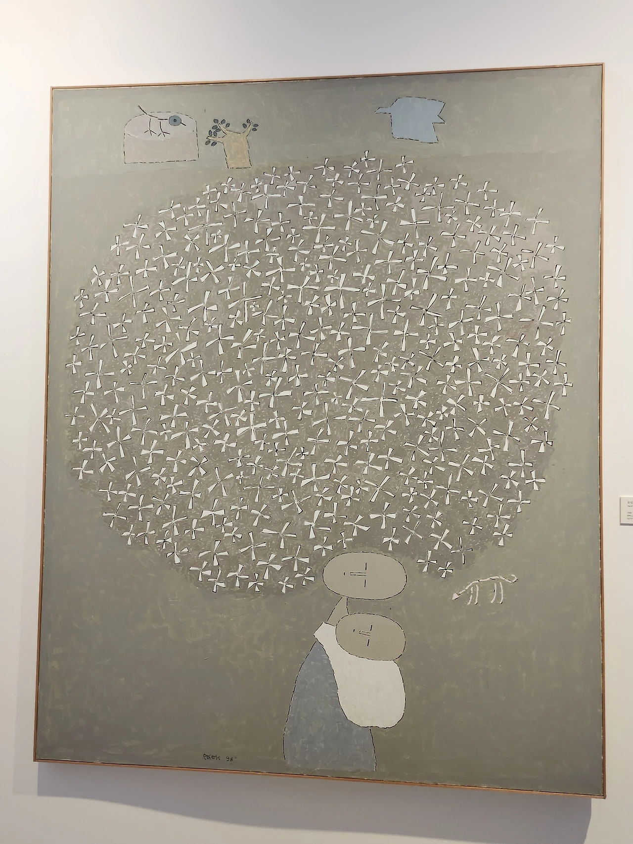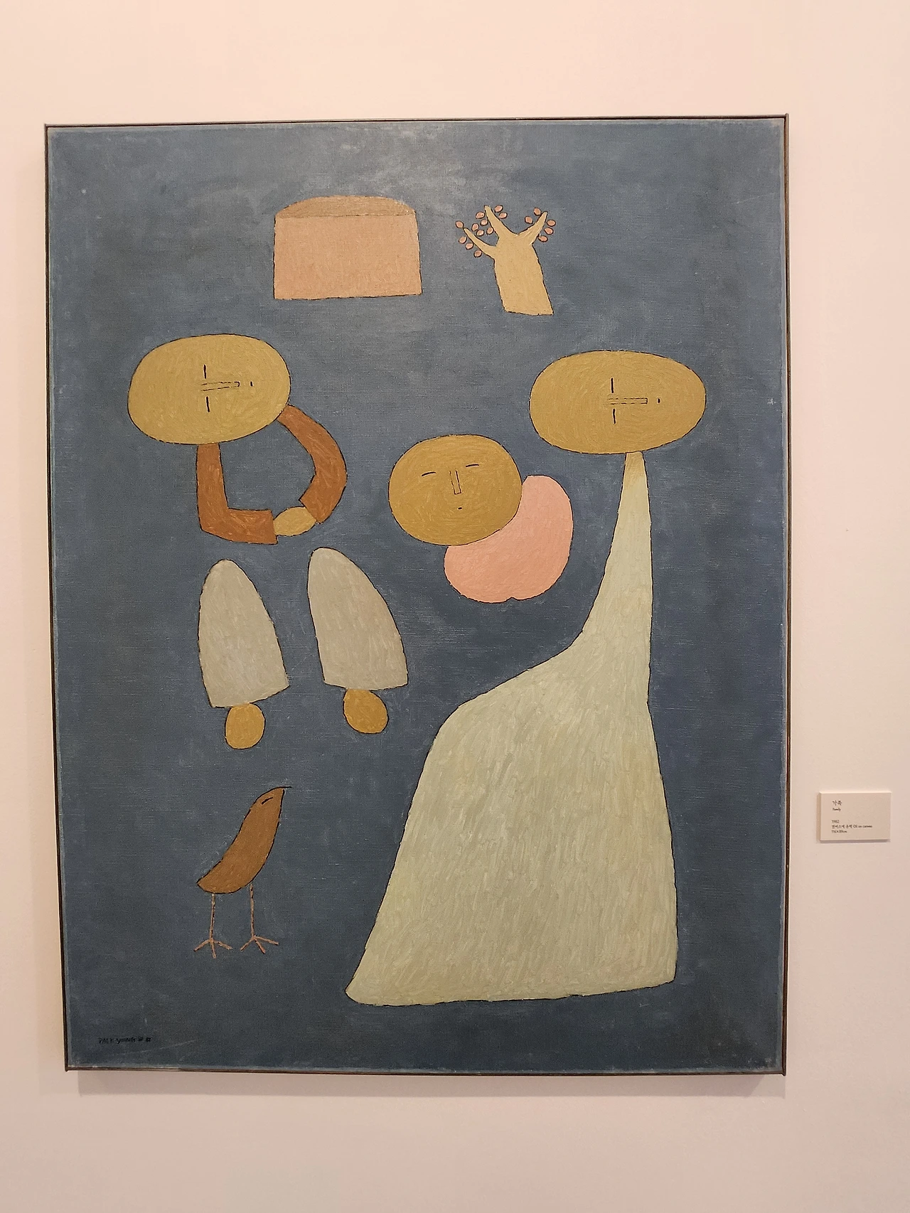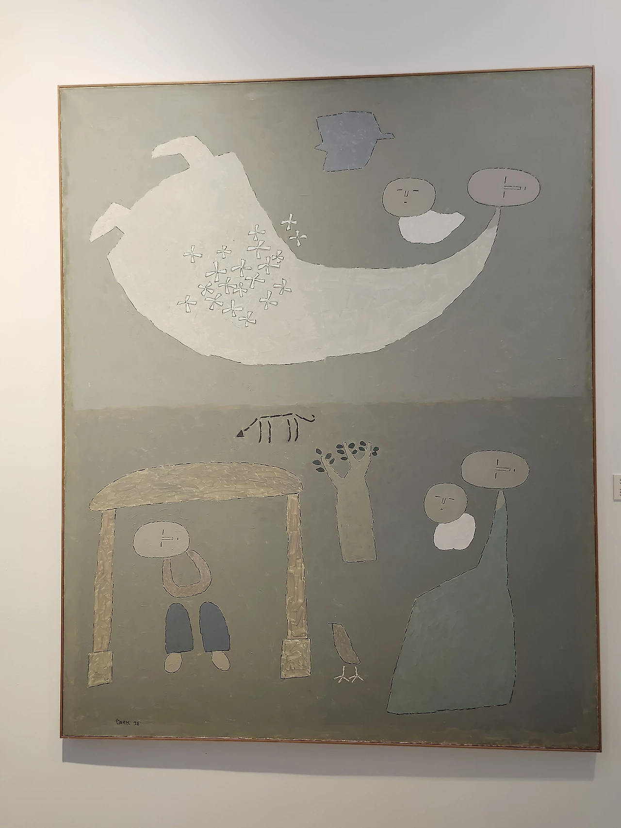 개관 5주년 기념으로 신사실파 백영수 화백 전시회가 열리길래 간 김에 관람했는데 화백의 작품이 대거 출품되어 영광이었다. 5년 전엔 사이즈가 작은 작품이 주를 이뤄 아기자기한 느낌이었다면, 이번 전시회는 대작도 많고, 작품 수도 많아 미술전이 풍성하고 감동이 배가 됐다. 미디어 아트로 꾸민 소개 영상은 마치 한 편의 애니메이션 동화를 보는 기분이 들었다. 백영수 화백 작품 속의 별들이 떨어지고, 그림 속의 모자상이 영상으로 다시 생생하게 등장한다. 특히 꽃비와 흰 눈이 내리는 장면은 마치 꿈결 같다.