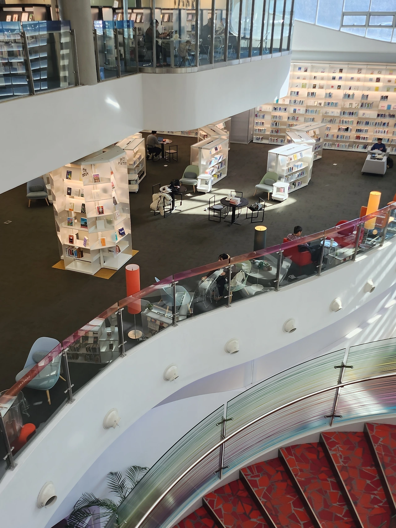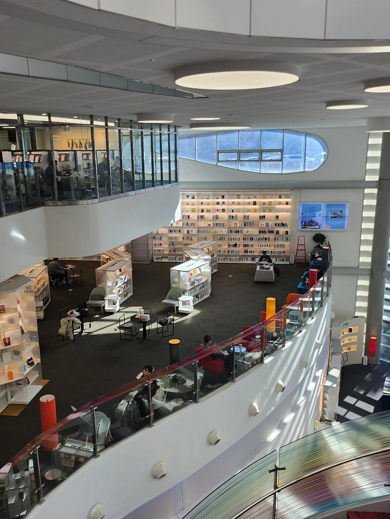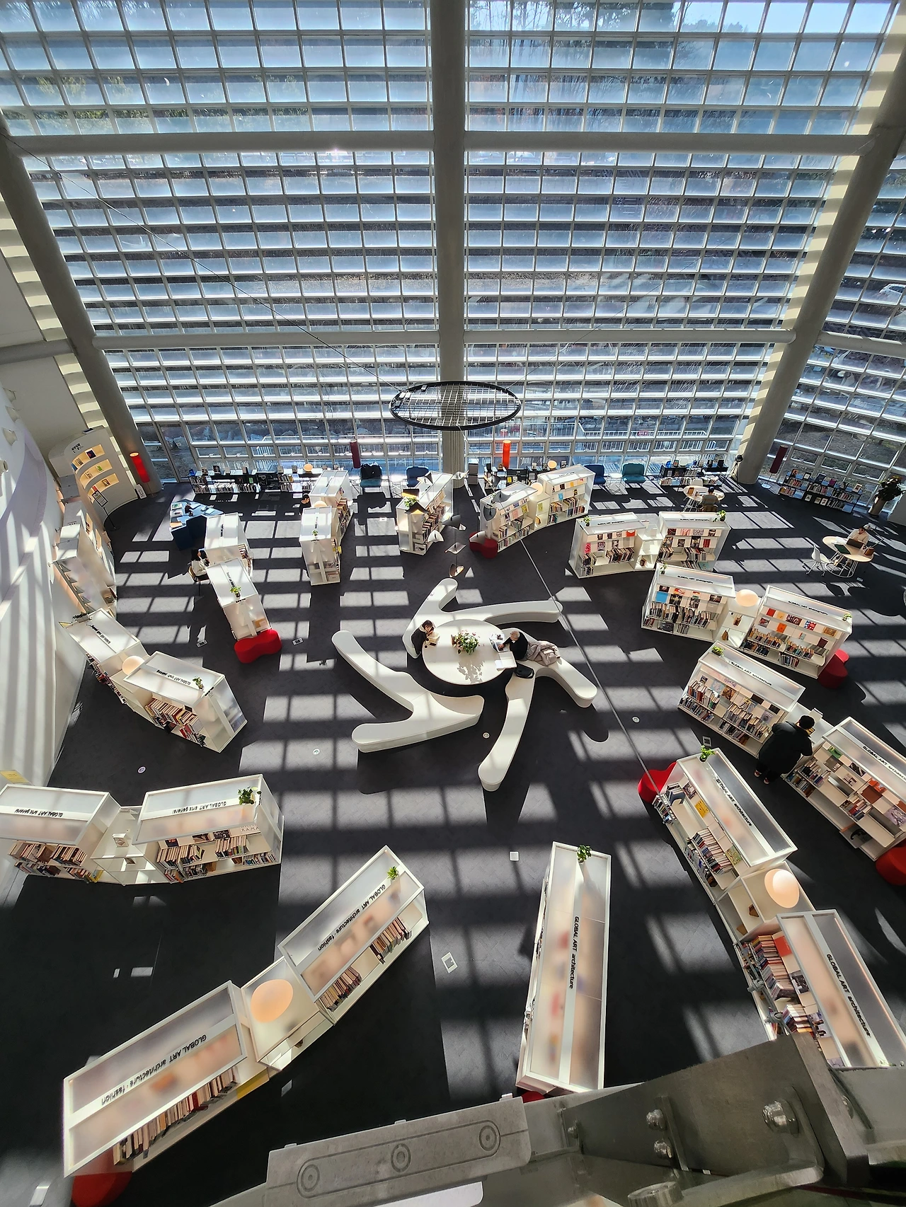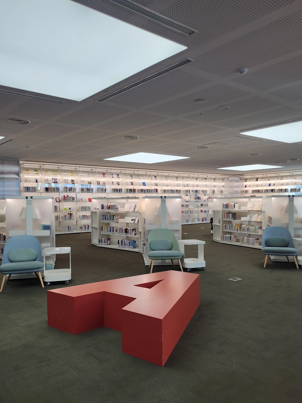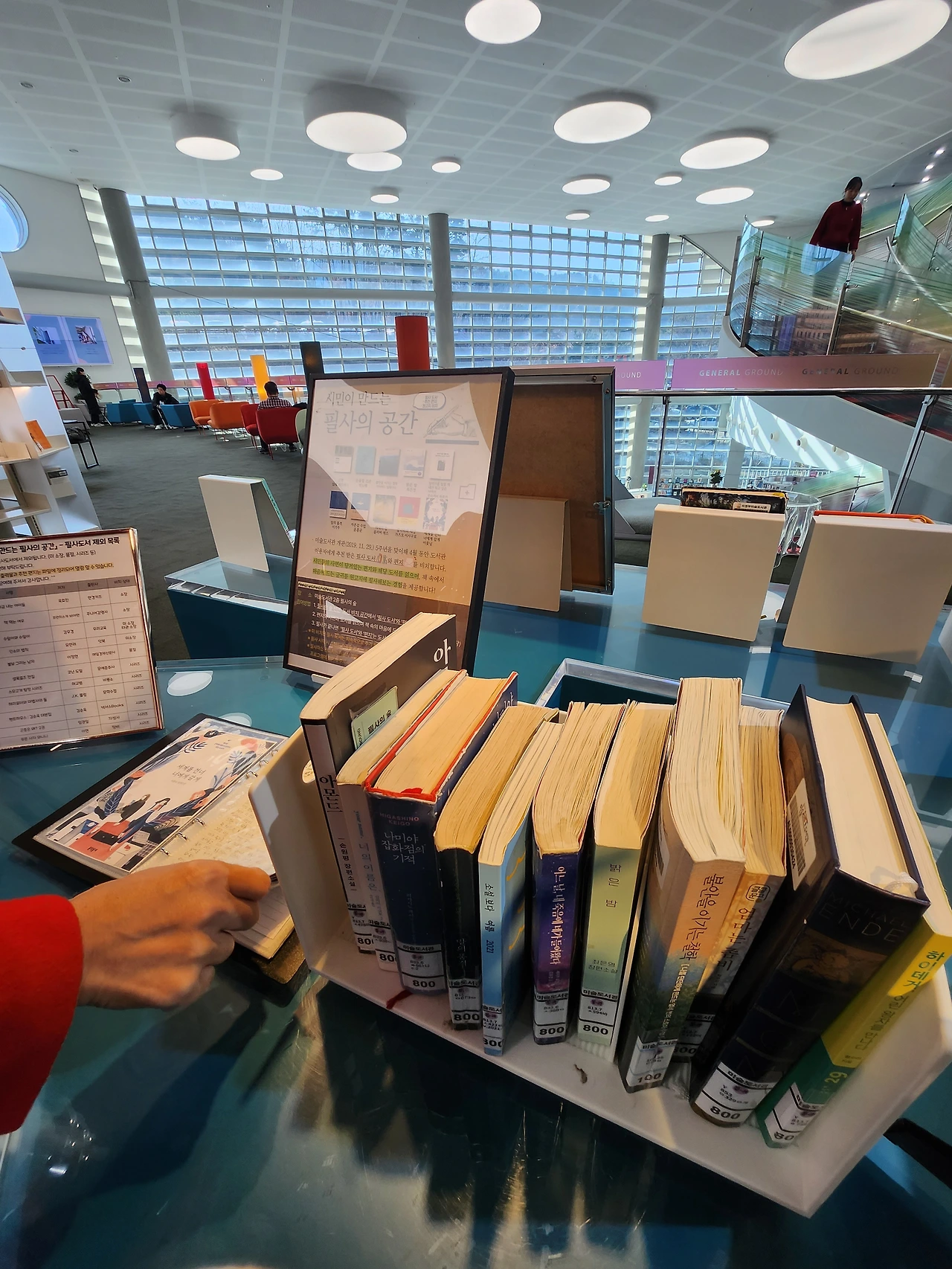 오전에 갔는데 테이블마다 커피나 음료를 자유로이 소지하고, 편안하게 책을 보고 있는 이들이 보기 좋았다. 나도 저들처럼 미술도서관에 여유롭게 머물고 싶었다. 이용자가 앉아 있는 모습 그 자체로도 그림이 되는 도서관. 도서관 주변 지역주민이 다 부러울 정도로 쾌적하고 근사하고 특별한 도서관이다.