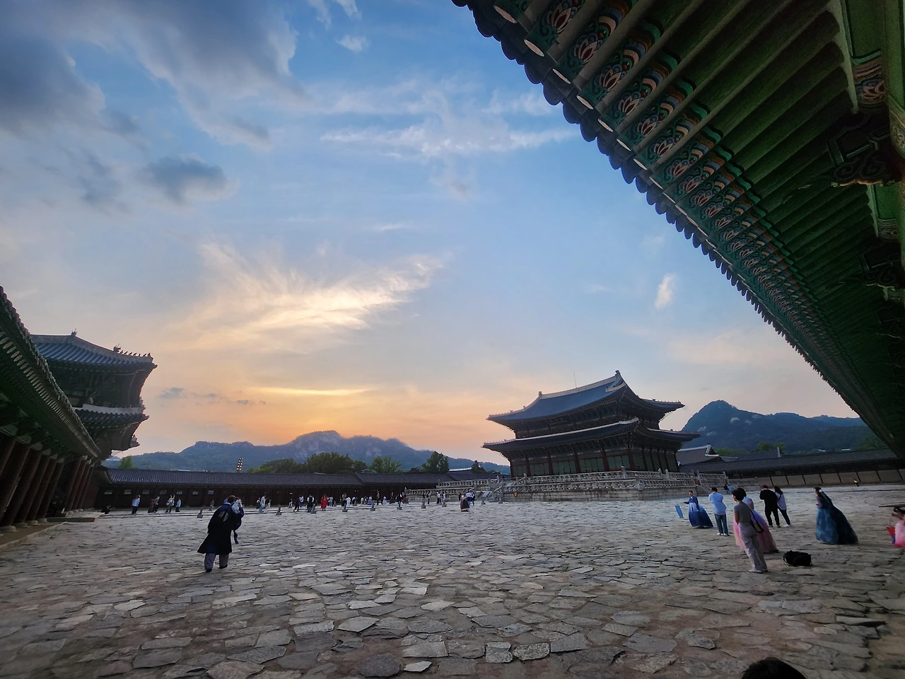 궁 너머로 보이는 인왕산 쪽 저녁노을이 시간의 추이에 따라 조금씩 빛깔을 달리하며 궁 주변을 호위했다.
