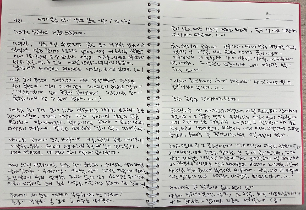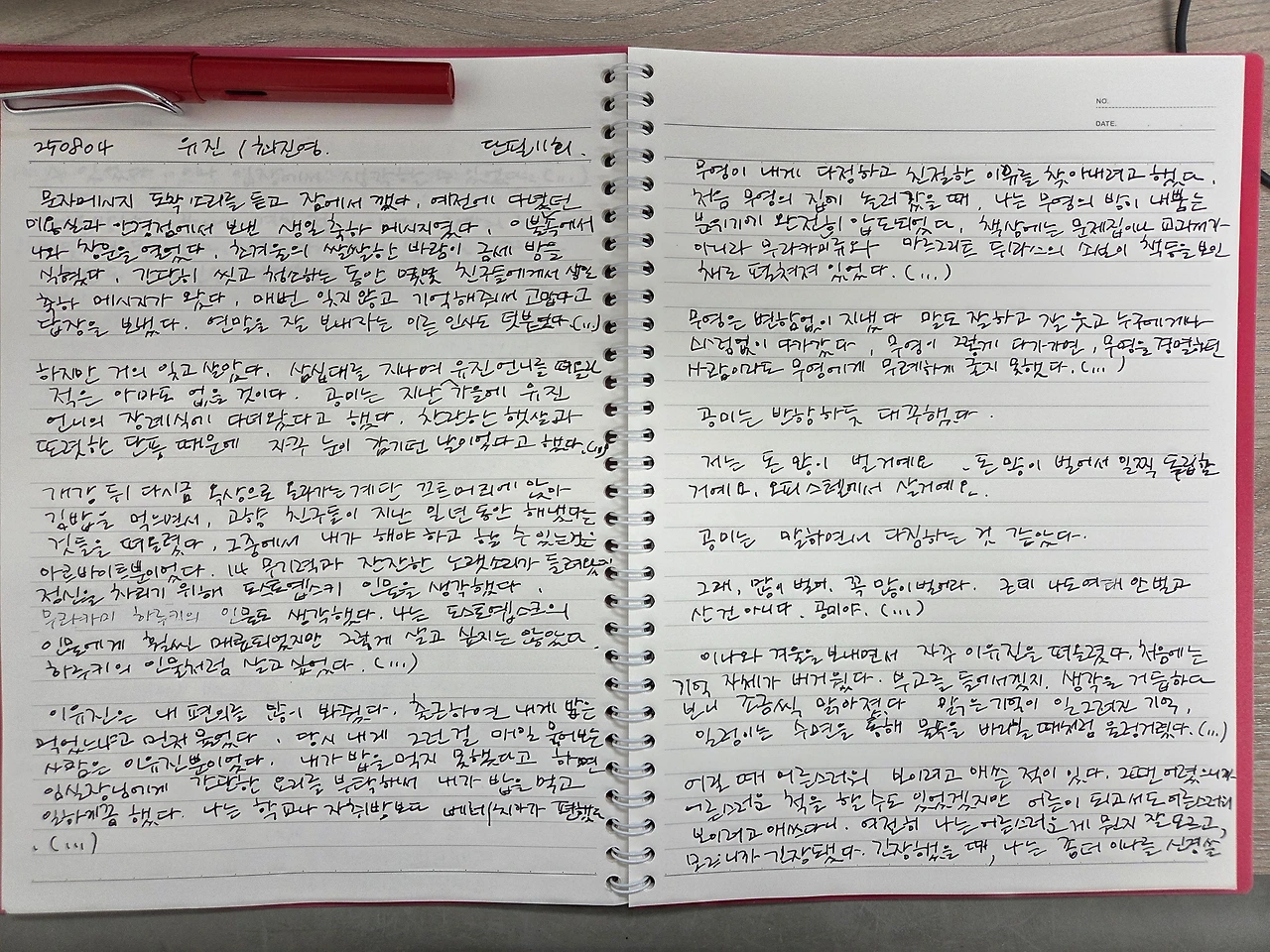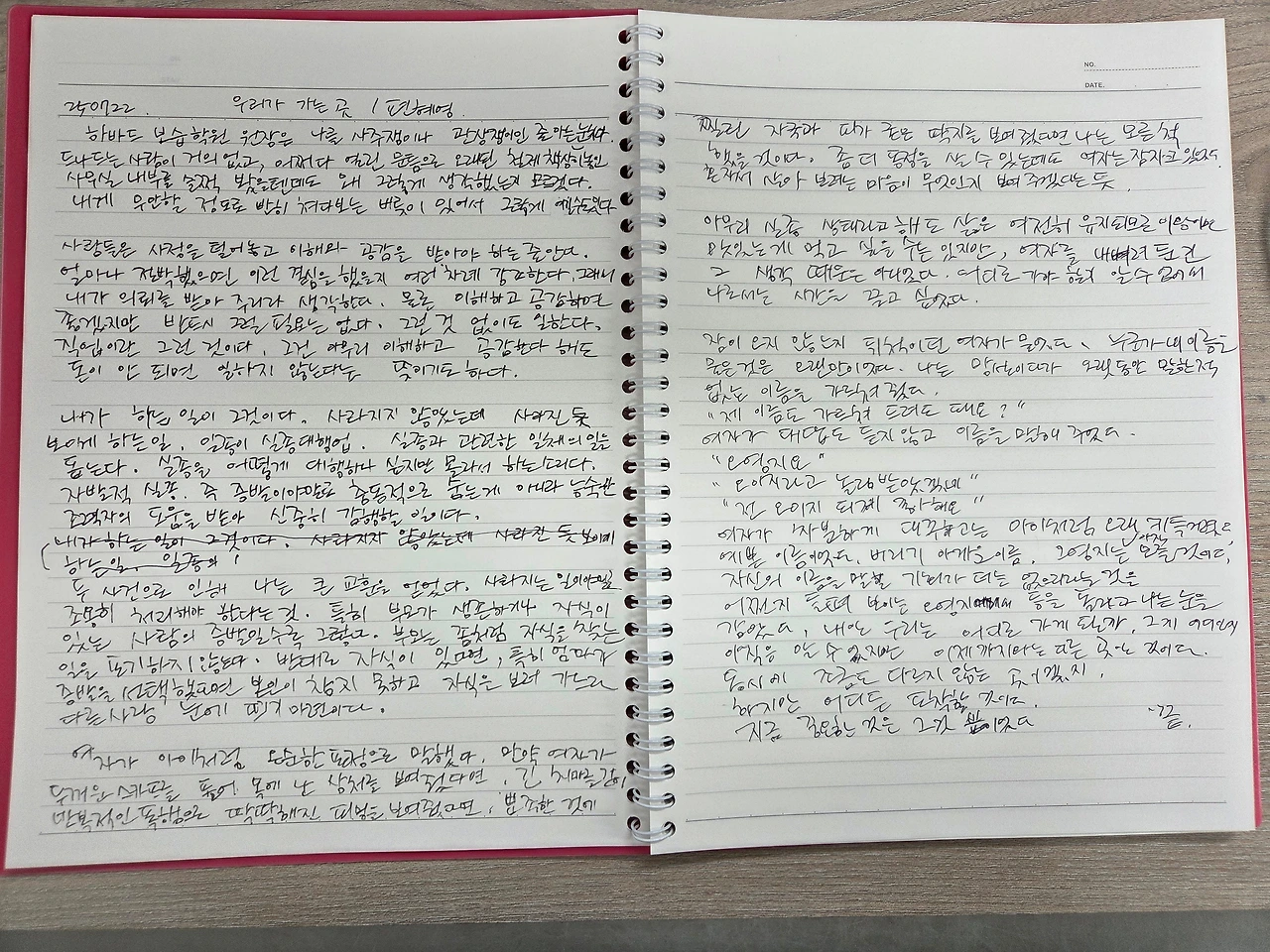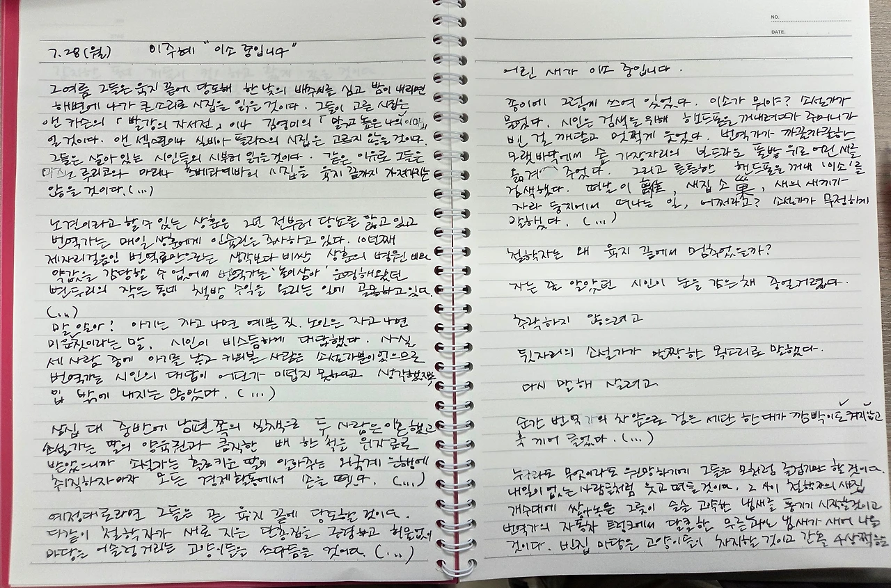 그동안 필사한 노트(오랜만에 손글씨를 써 보는 즐거움을 만끽하고 있다. 예전엔 그래도 잘 썼었는데~~^^)