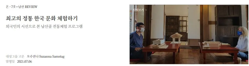 남산골한옥마을 웹진(2021.7)"한옥마을에서 가장 중요한 체험 프로그램은 한옥을 배우는 프로그램일 것이다"