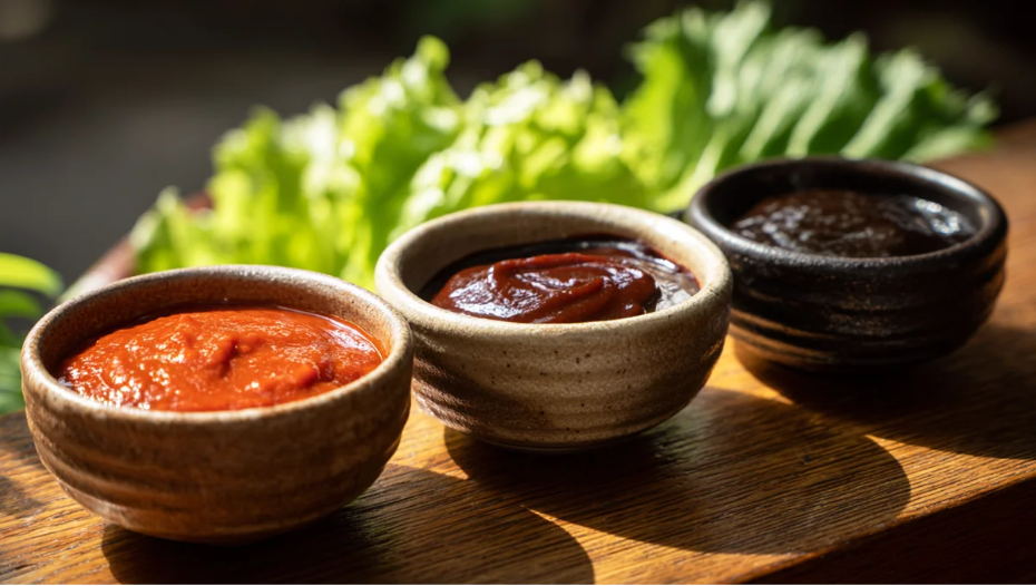 쌈밥은 채소와 함께 여러 종류의 장을 함께 먹는 음식이다. 원하면, 밥의 종류를 다르게 해서 넣어도 되고, 쌈의 종류를 바꿔도 좋다.
