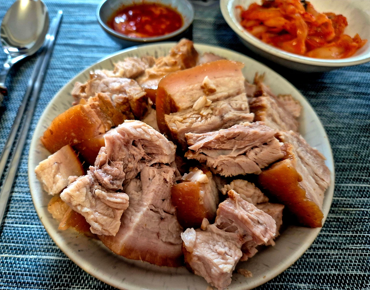수육용 통삼겹살: 제주산 돼지고기 못지않게 질이 좋고 약 1kg 양으로 개별 진공포장 되어있어 신선도도 보장된다. 보통 100g에 2.3프랑 정도 하며 수육, 김치찜, 김치찌개 등 다양하게 활용하기 좋다!