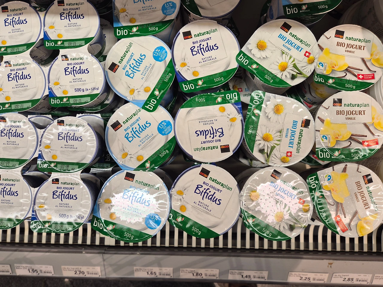 그릭요거트: 스위스에는 요거트, 우유, 치즈 등 유제품의 종류가 워낙 많다. 이것저것 다양한 시도 끝에 우리가 정착한 요거트는 COOP의 PB제품으로 500g 용량에 1.45프랑인 natural plan bio yogurt이다. 아침에 과일이랑 주로 먹고 샐러드 드레싱 만들 때 활용하기도 좋다!