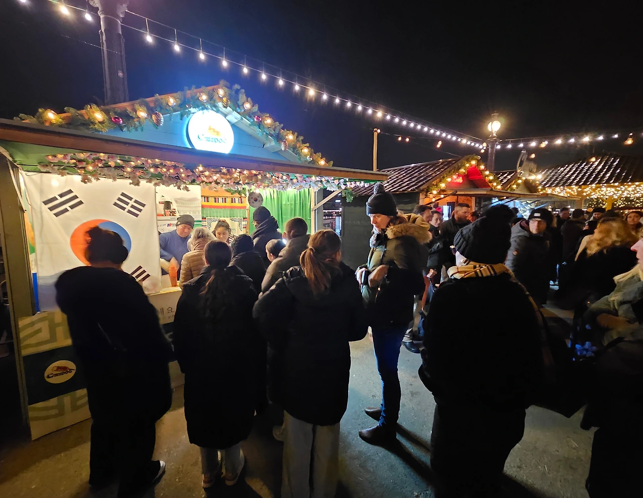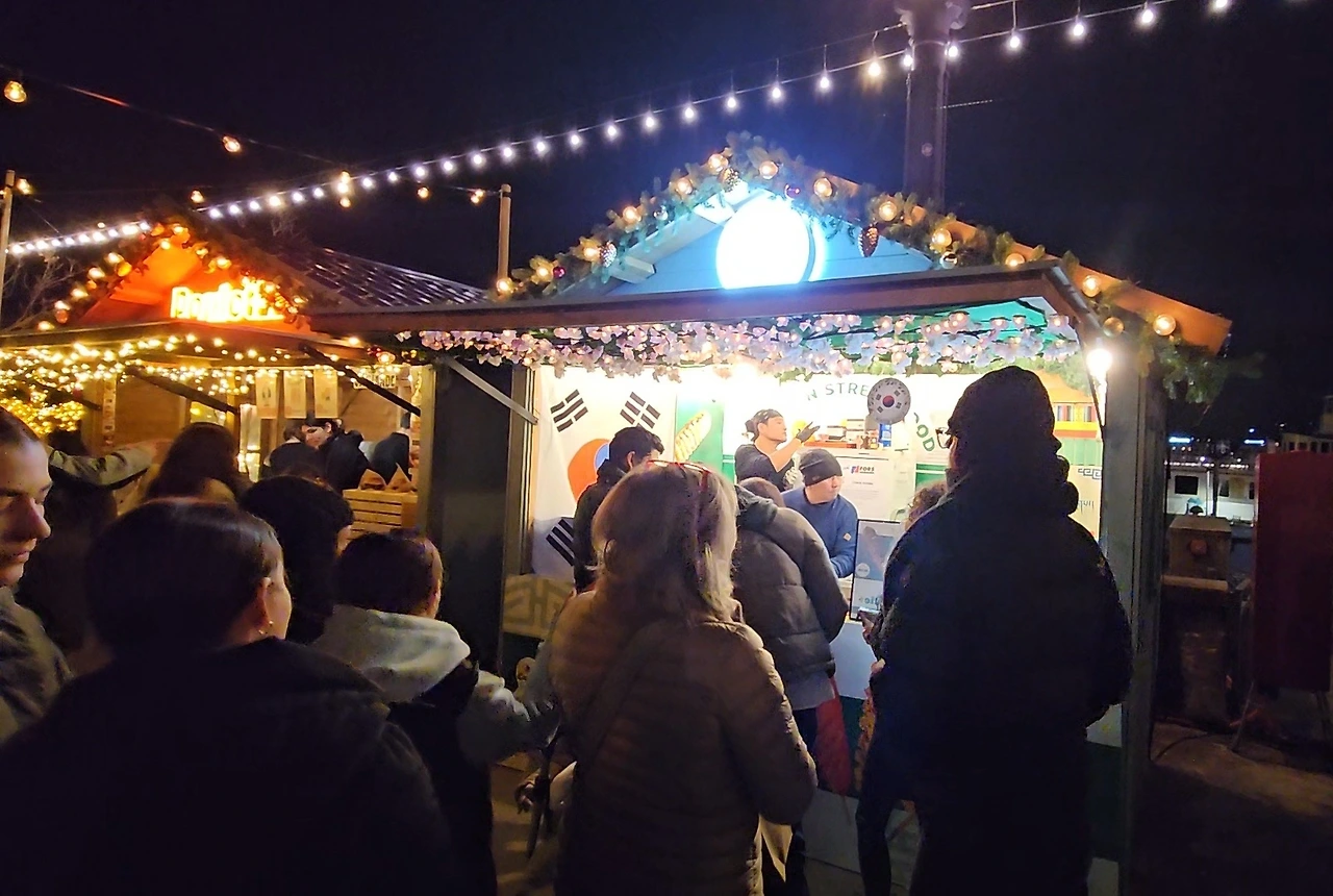 게다가 그 여느 인기 있는 타코, 케밥, 치즈퐁듀, 수제버거 등 가게들보다도 가장 긴 줄을 자랑하며 크리스마스 마켓 입구에 태극기를 달고 자리하고 있는 가게를 보는데 마치 내가 만든 핫도그인양 무척이지 자랑스러웠다!
