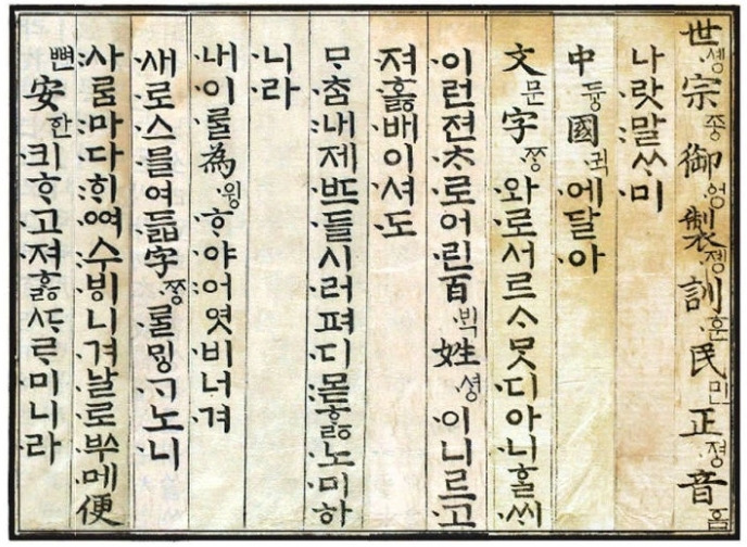 “나라의 말이 중국과 달라, 문자와 서로 통하지 아니하므로 백성이 말하고자 하는 바가 있어도 마침내 제 뜻을 능히 펴지 못하는 사람이 많다.