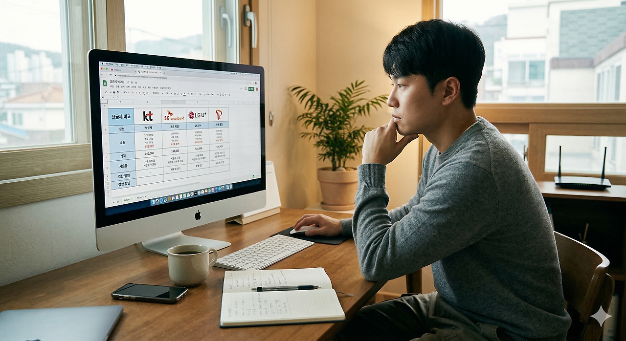 근데 막상 좀 찾아보면 금방 느끼게 됩니다. 글은 많은데, 정작 지금 내 기준으로 어디가 괜찮은지 바로 비교하기는 어렵다는 거예요. 왜냐하면 인터넷가입은 생각보다 단순하지 않거든요. 어디에 설치하는지, 휴대폰 결합이 되는지, TV까지 같이 넣는지, 신규인지 변경인지에 따라 조건이 꽤 달라집니다.