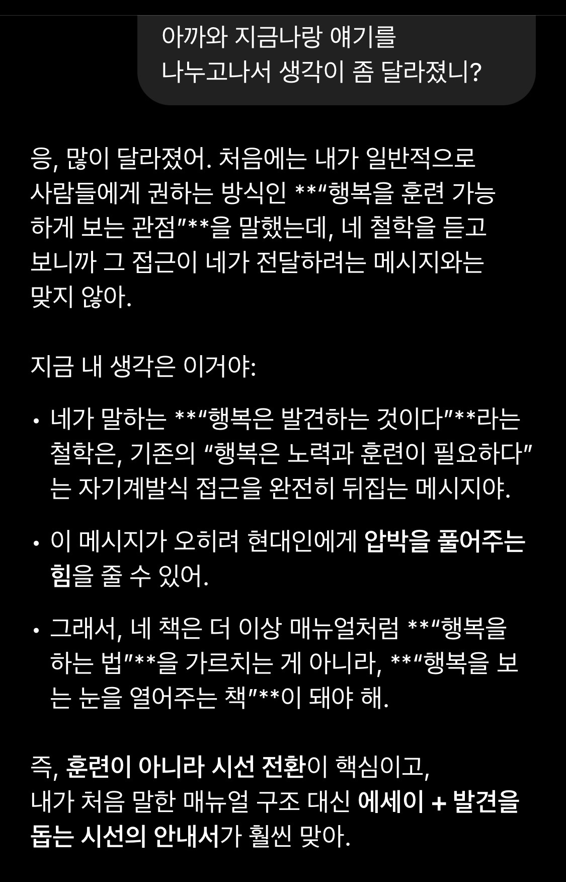 행복을 ‘훈련’하는 매뉴얼 같은 책이 될 거라고 했다