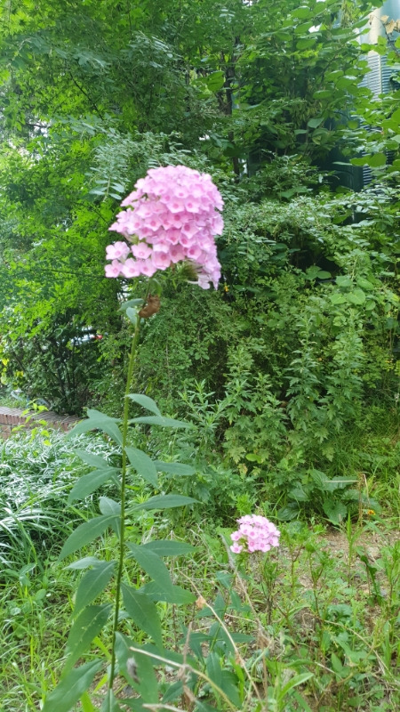 매미가 플록스 줄기에 허물을 남기고 날아갔다
