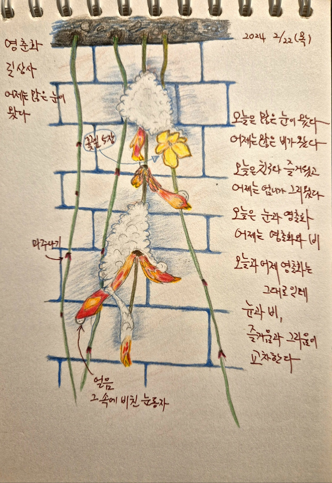 길상사에 오늘은 많은 눈이 왔고, 어제는 많은 비가 왔다