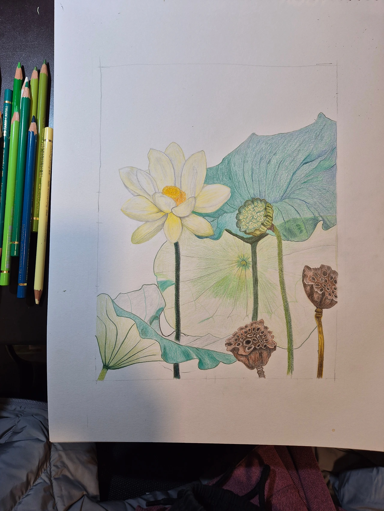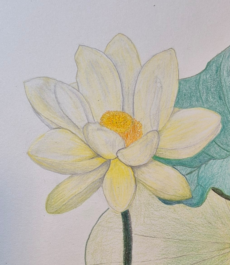 큰 연잎의 특성상 숏피치의 색연필을 수없이 채워야 한다.