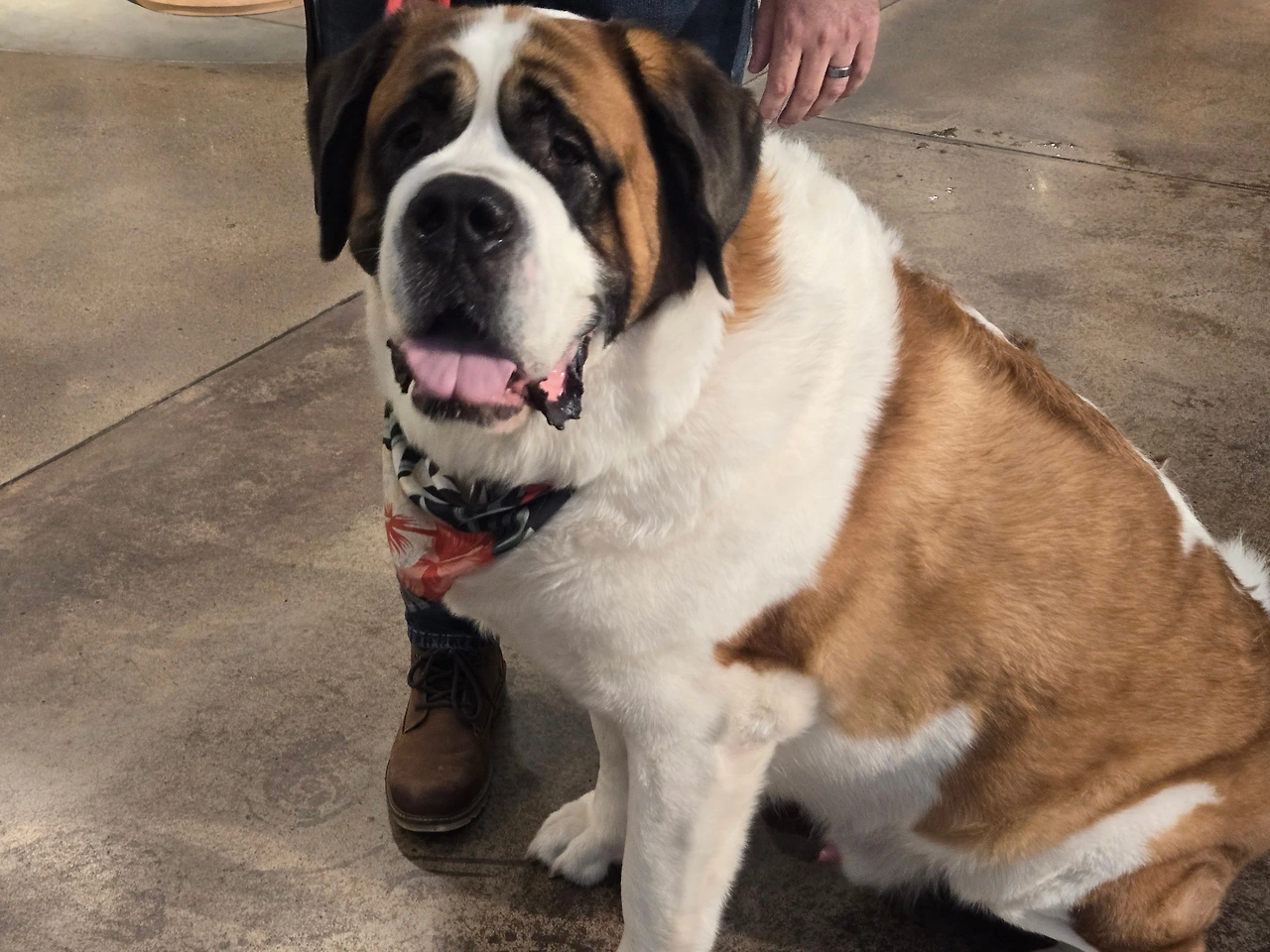 커다란 덩치에 어울리지 않게 얌전하고 느긋한 걸음, 두툼한 혀를 내밀고 헥헥거리며 사람들의 관심을 한 몸에 받고 있었다.