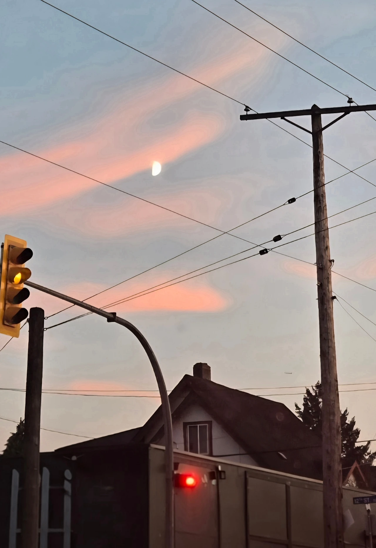 돌아갈 길을 잃은 듯, 하늘엔 어둡게 깔린 구름 사이로 반달이 흔들리며 떠 있었다.