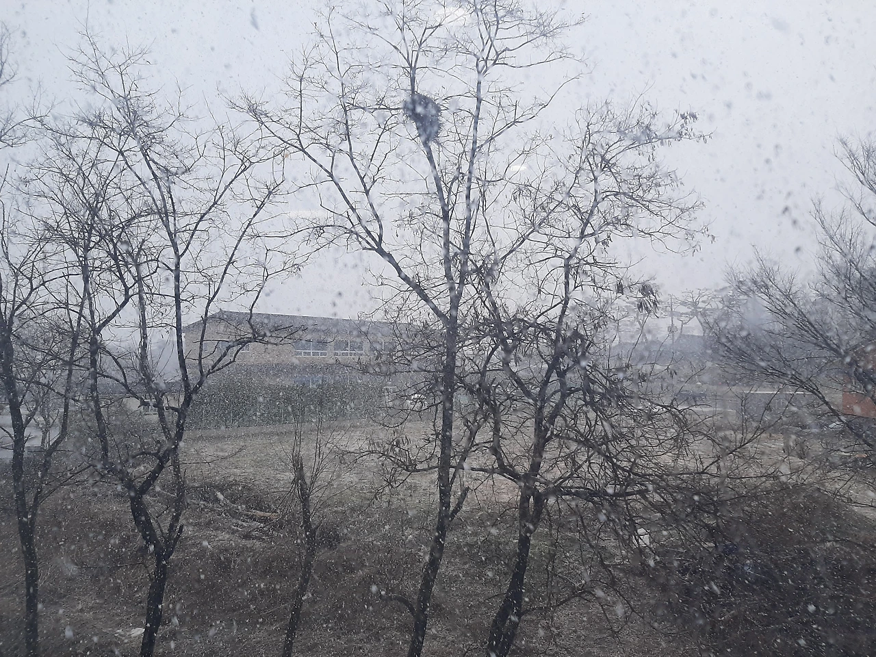 -봄, 꽃이 피는 계절에 눈이 내렸다.