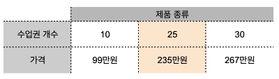 목표는 30회권을 파는 것이다. 기본 구조는 수업권을 많이 사면, 수업권 1회당 가격은 더 떨어진다.(10회권 9.9만원, 25회권 9.4만원, 30회권 8.9만원) 여기서 25회권 패키지를 하나 더 만든다. 그러면 고객은 25회권 패키지와 30회권 패키지를 비교하여 30회권 패키지를 사는 것이 더 유리하다고 생각하여 30회권 패키지를 구매하게 된다.