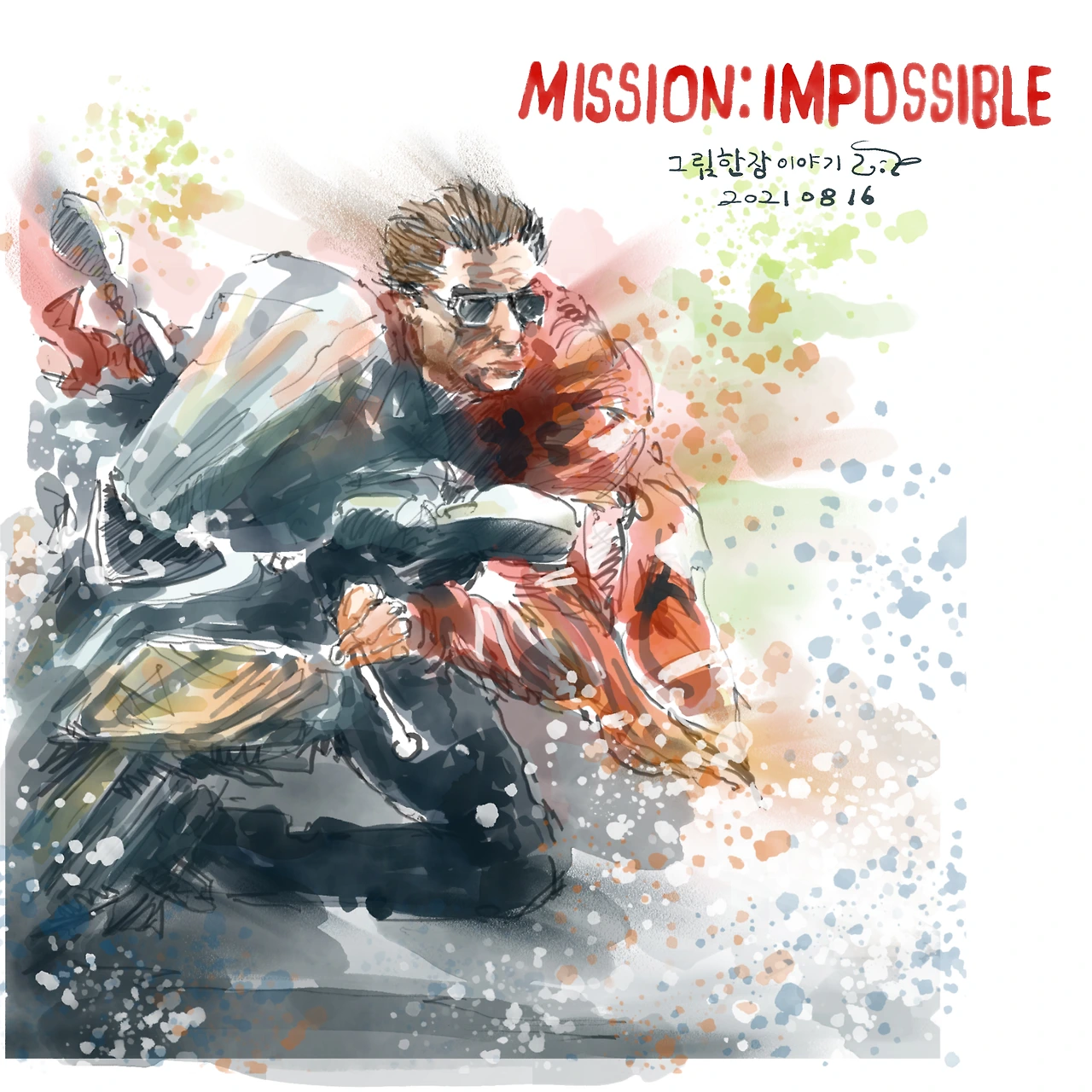 네. 톰 크루즈를 1도 안 닮은 거 저도 압니다. 그렇습니다. 미션 임파서블 시리즈를 그린 겁니다. 자신만의 프랜차이즈 작품을 가지고 있는 배우는 극히 드물 겁니다. 톰 크루즈 하면 이제는 미션 임파서블 시리즈가 떠오릅니다. 시리즈 최근작까지 아직 건제한 액션을 보여주었던 톰 크루즈. 그러나 외모는 세월 앞에 장사가 없다는 것을 보여주는 것 같습니다. 탑건의 앳된 모습이 주마등처럼 스쳐갑니다.