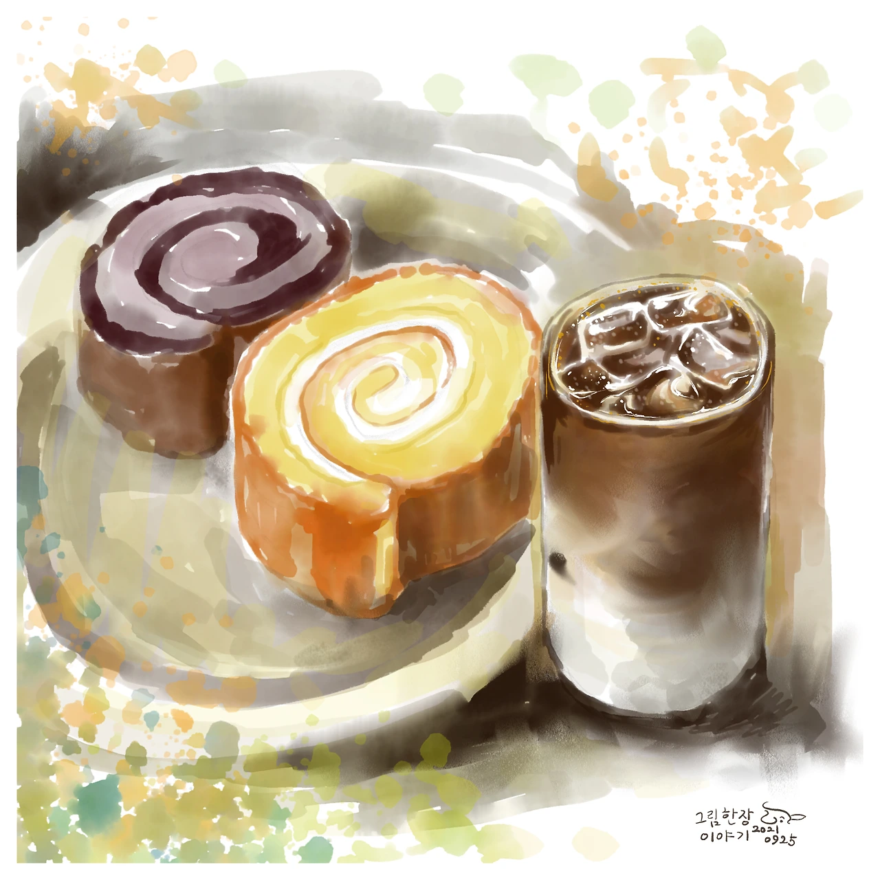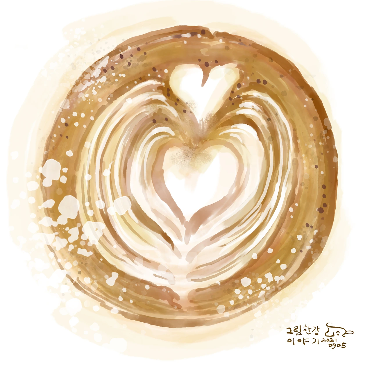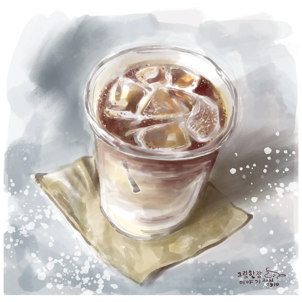 그림을 그릴 때 은은한 커피 한잔을 옆에 두고 작업을 시작합니다. 그림에 몰입하다 보면 커피는 남아서 식어있게 되죠. 그림이 완성되면 그 식은 커피를 원샷합니다.