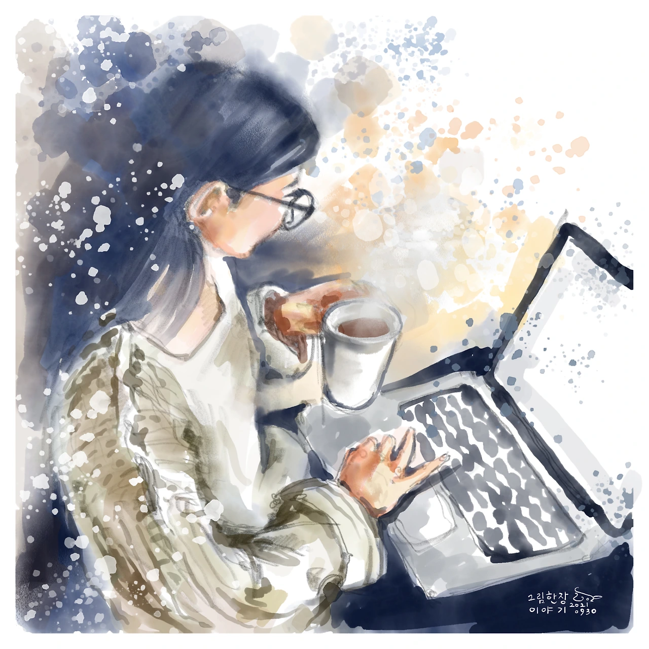 9월... 무엇을 그릴까? 생각하다가 가을이 시작되는 때에 커피라면 잘 어울릴 것 같았습니다. 일에 치여 커피가 코로 들어가는지 입으로 들어가는지 모르는 상황이 아닌, 여유롭게 가을의 정취에 취하며 향긋한 커피 한잔 함께 하시기를 바랍니다.