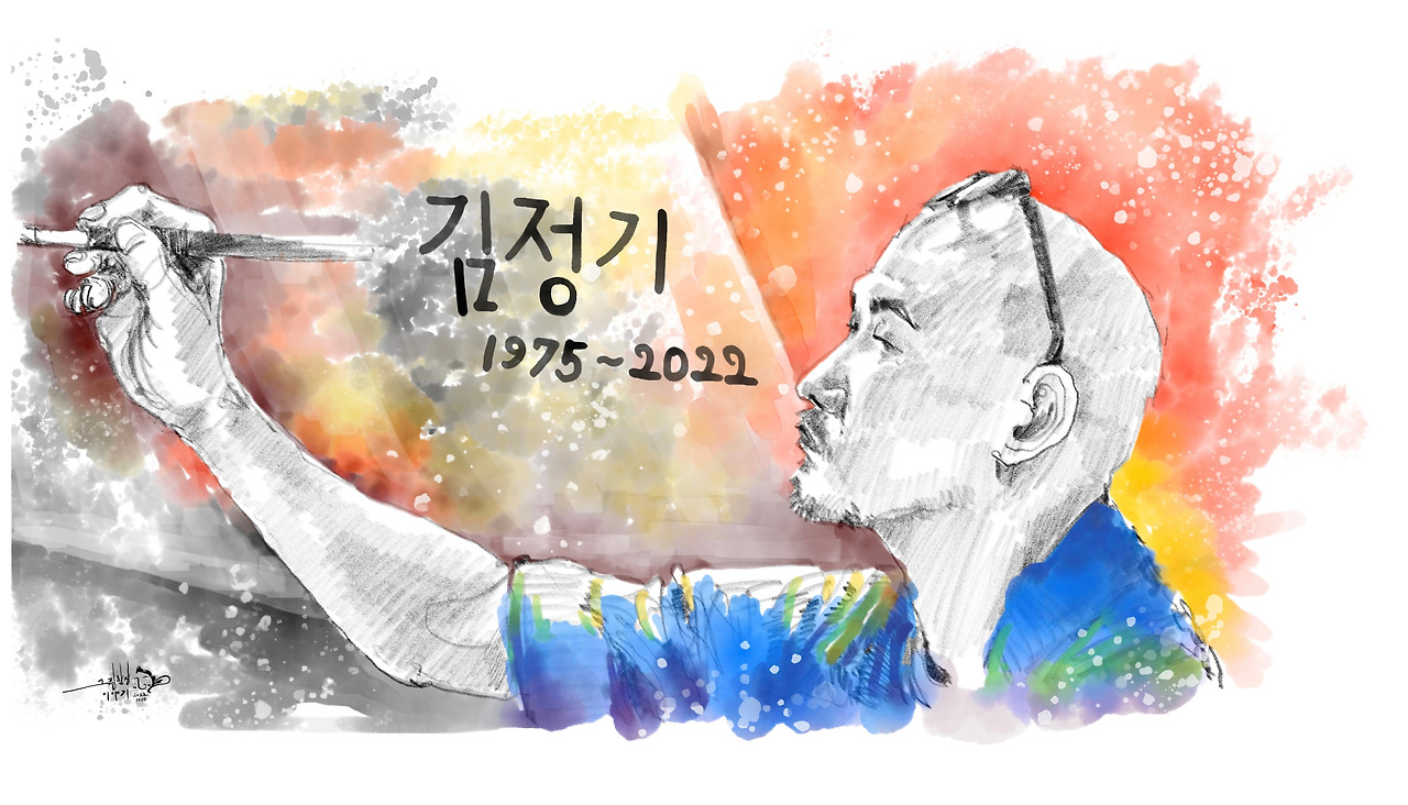 그의 갑작스러운 죽음이 전해졌습니다. 비보가 전해지기 불과 얼마 전에도 그의 라이브 방송을 봤었기에 더 놀라고 비통했습니다. 저는 어느 인터넷 매체의 인터뷰에서 궁극적인 목표를 밝히며 김정기 작가를 언급했었습니다. 그가 하는 것처럼 머릿속의 생각을 그림으로 표현하고 싶다고 말이죠. 그만큼 그는 저에게 영감을 주는 대상이었습니다. 그와 같은 세상에 없다는 것이 저에게 큰 공허함을 줍니다.