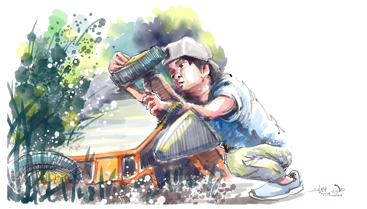위의 아이도 자신의 자전거로 보이는 물건이 고장 났는지 이리저리 살펴보고 있습니다. 저 아이는 고칠 수 있을까요? 어느 심리 학자의 말에 따르면 친하다고 생각되는 대상일수록 잘 안다고 착각을 한다고 합니다. 오래 운전한 나의 자동차, 손때가 묻은 다리미, 소중한 나의 자전거.. 다른 말로 하면 정이든 물건들입니다. 정이 깊이 든 물건일수록 고칠 수 있다는 환상에 사로잡힙니다. 간단한 원인이 아니고서는 대부분 고치지 못하고 전문가를 부르던가 새 물건을 사야 합니다.