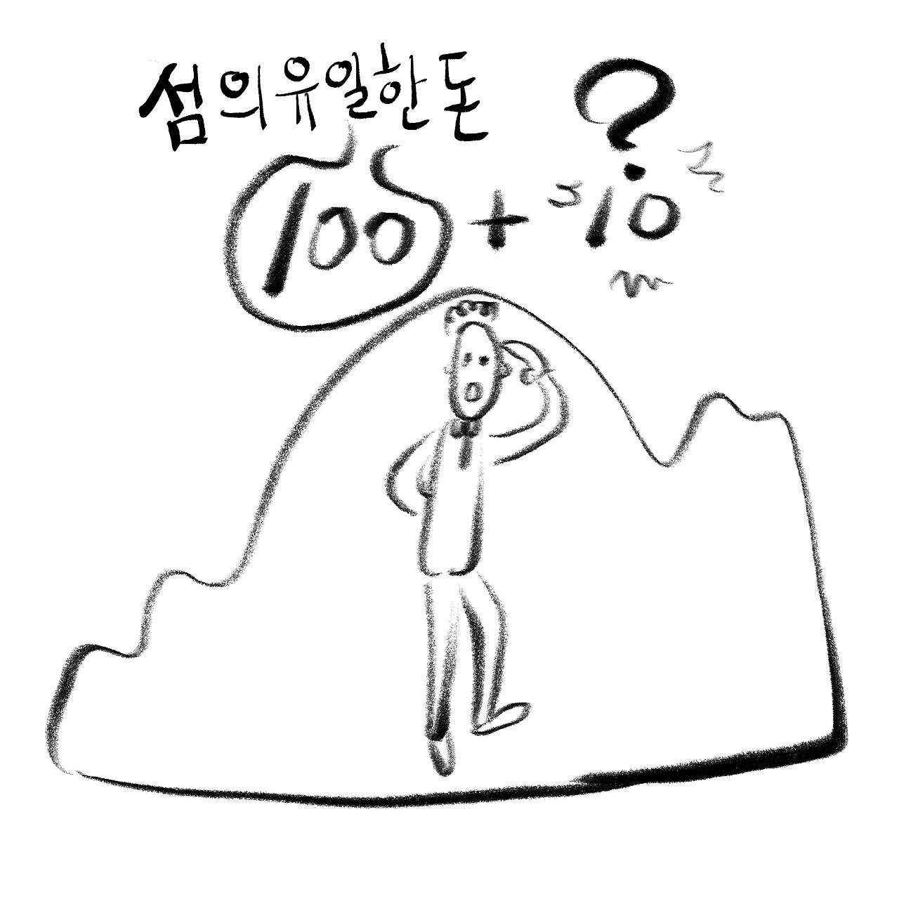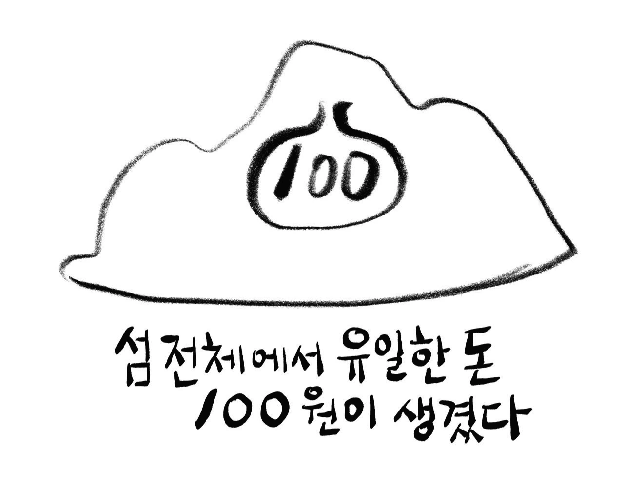 섬 전체에 있는 돈은 100원뿐이다. 10원을 구할 수 없는 것이다. 10원은 은행 장부에만 기록이 되어있었지 은행 밖으로 나간 적이 없다.